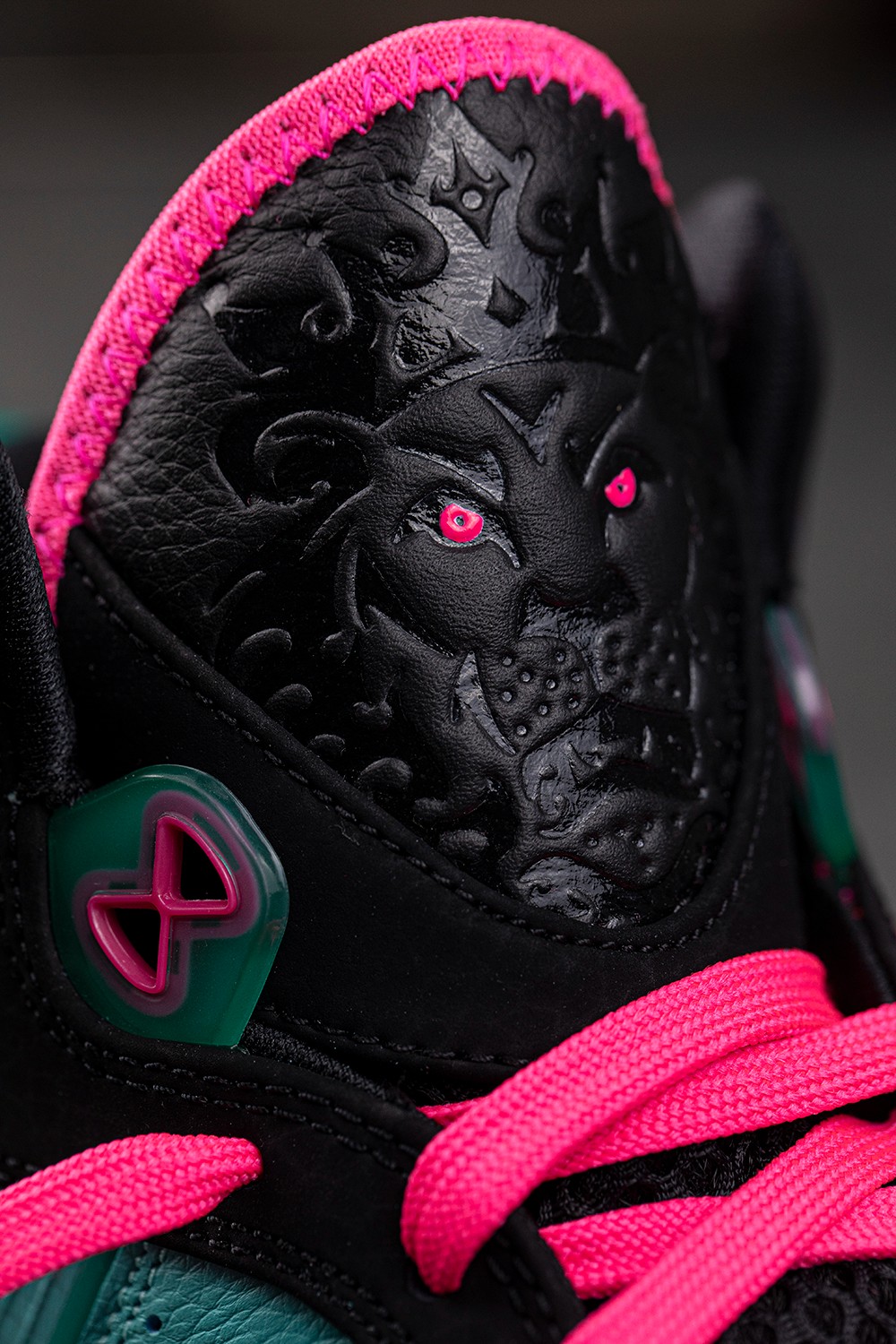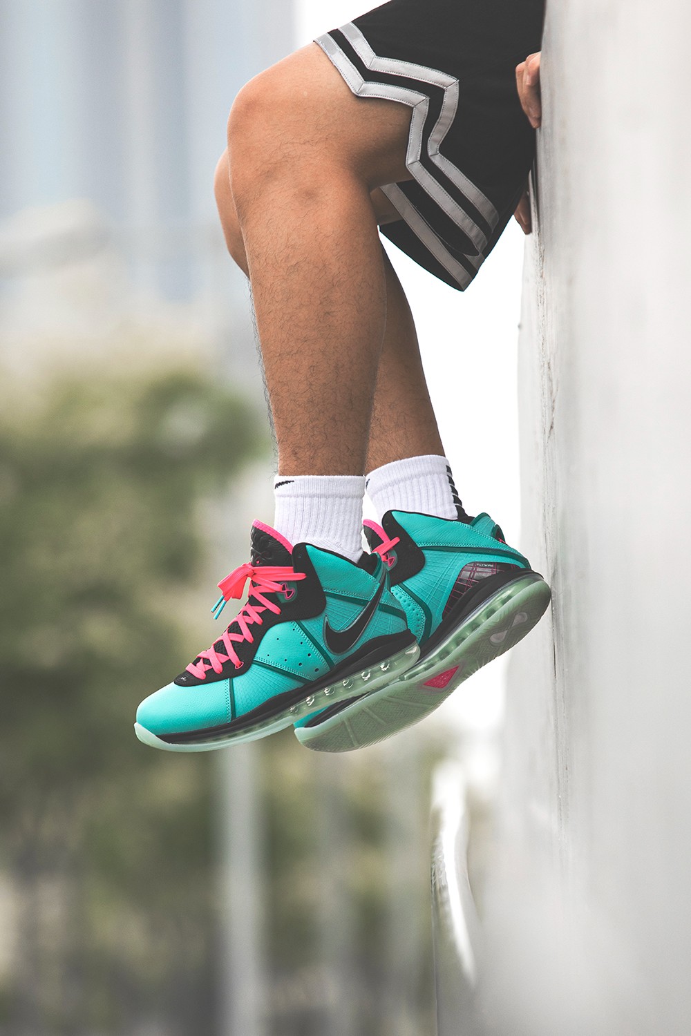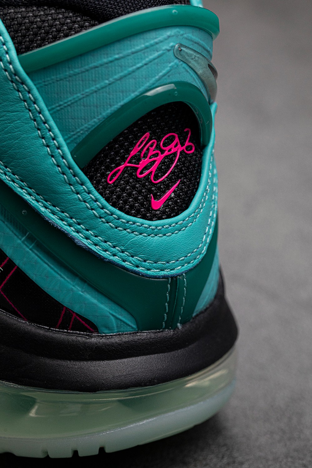 鞋面以湖蓝色为主调,让人联想到迈阿密这座海滨城市的气息。