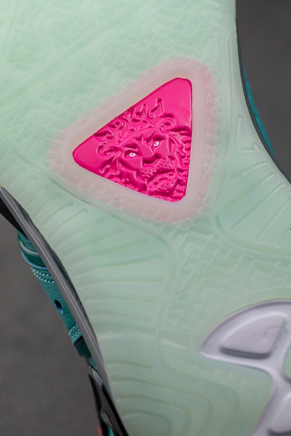 质感极强的狮王造型置于鞋舌以及中底稳定片,吸睛度十足。