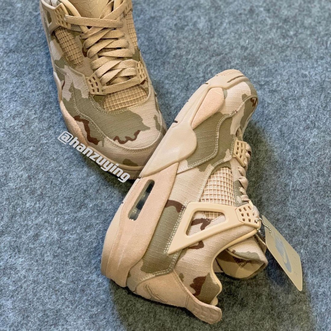 鞋面采用沙漠迷彩图案的防撕尼龙布打造,后跟、中底以沙色麂皮点缀。