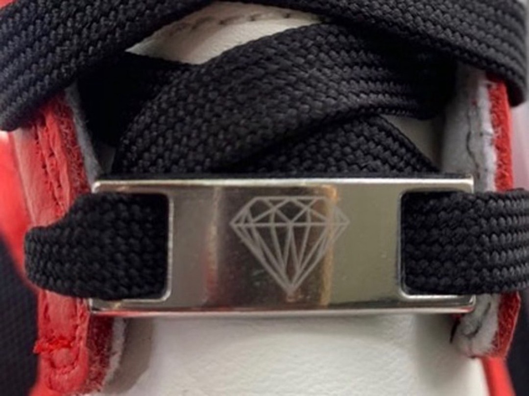鞋带扣点缀激光刻制的钻石图案代表了钻石周年,细节处理也尽显鞋款联名身份。