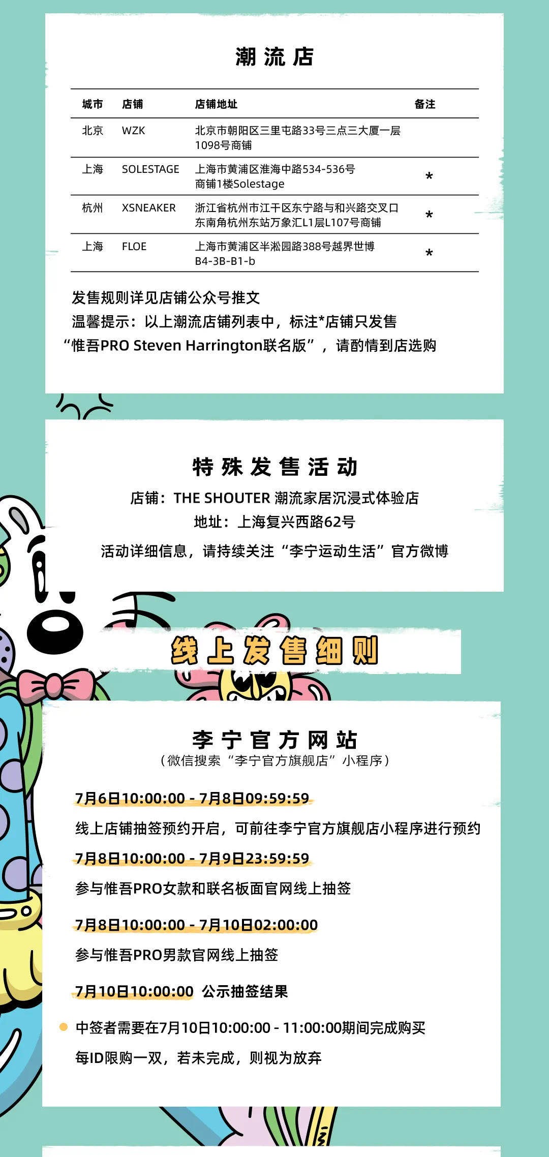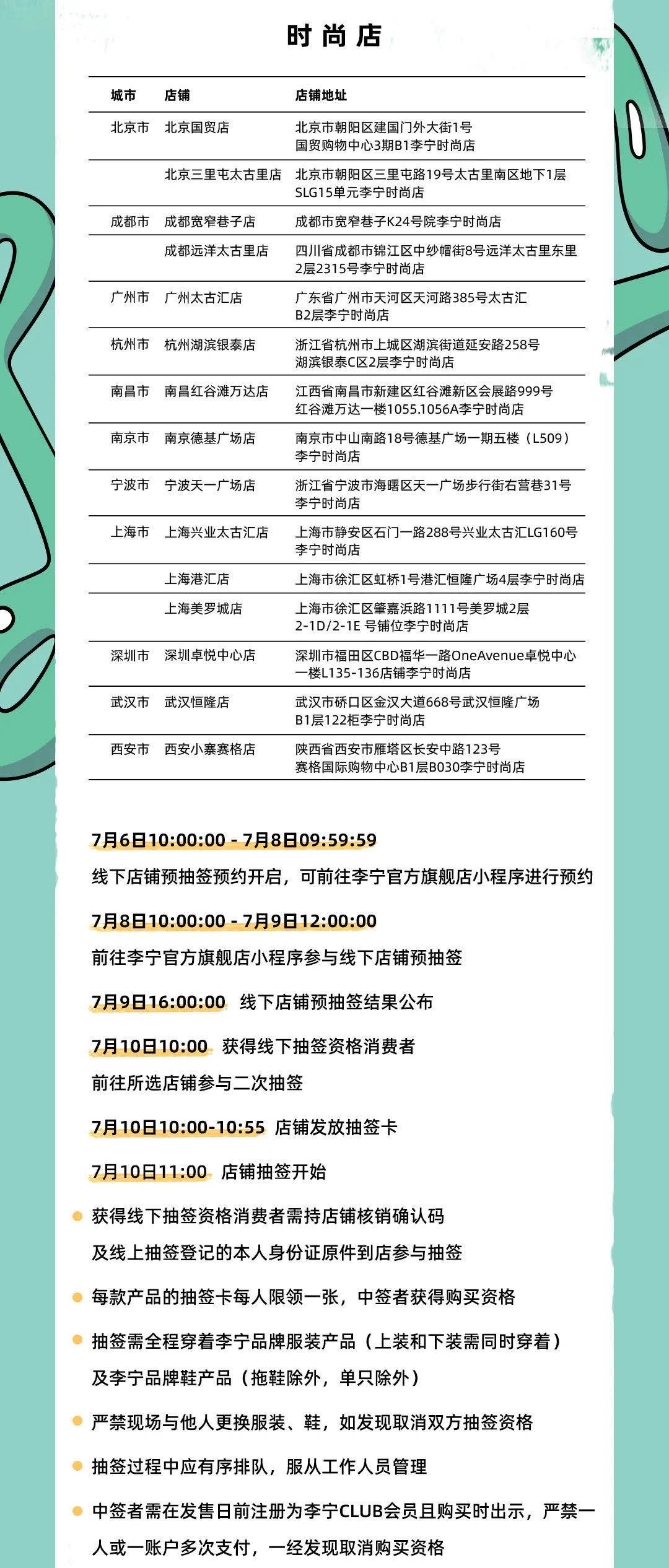 目前线下店铺抽签登记已经开启,线上则会在李宁官网、天猫官方旗舰店、京东官方旗舰店抽签发售。