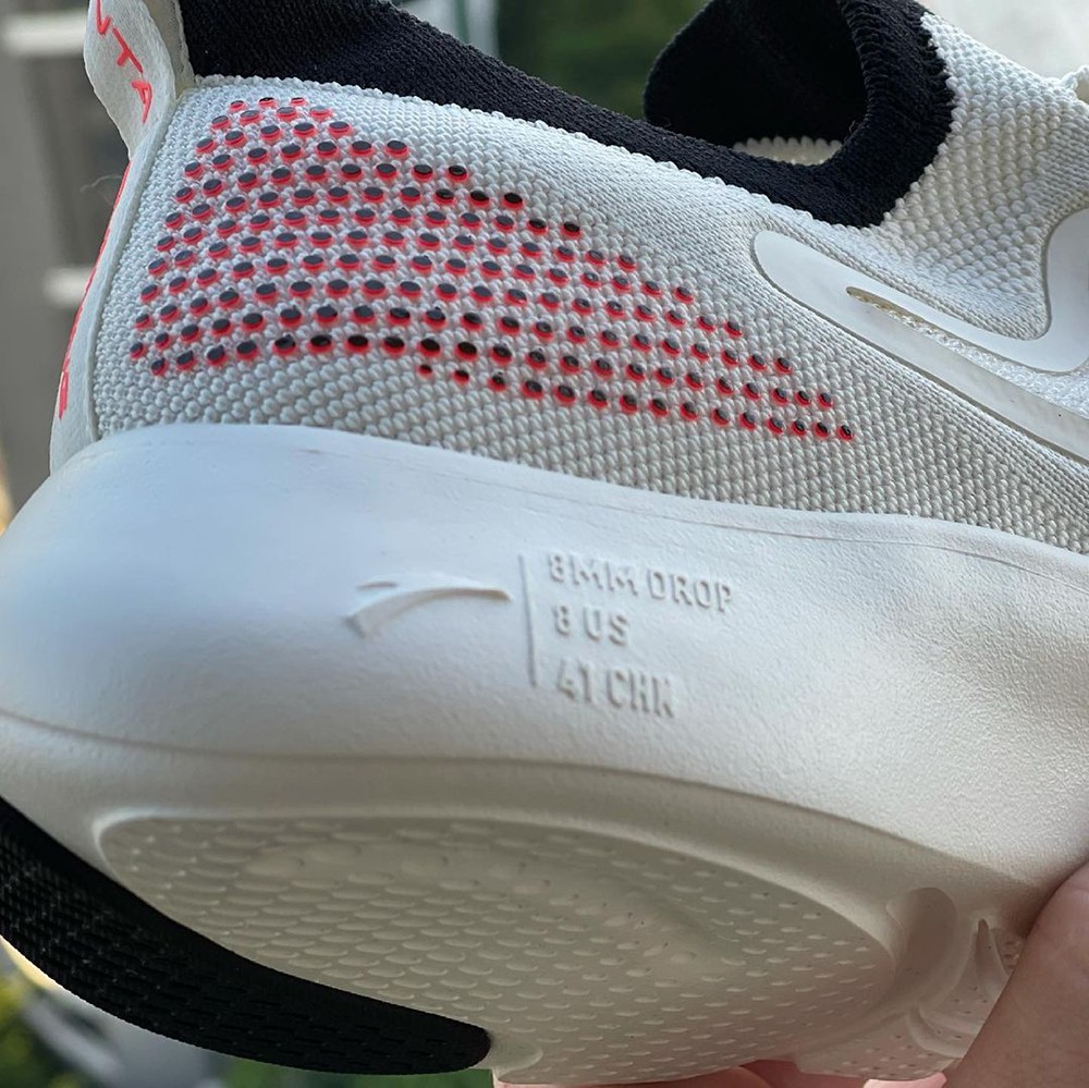 同时可以看出中底似乎是与外底为一体打造,前后掌部分分别注入额外的橡胶补强,这一操作在安踏过往的跑鞋上就有体现。