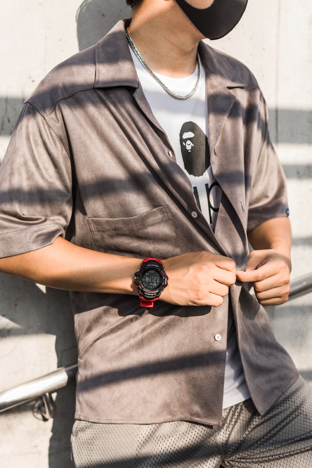 由于表盘比较大,所以在整身穿搭中的存在感超强,再加上黑中带红的颜色搭配,别人想忽略都难。