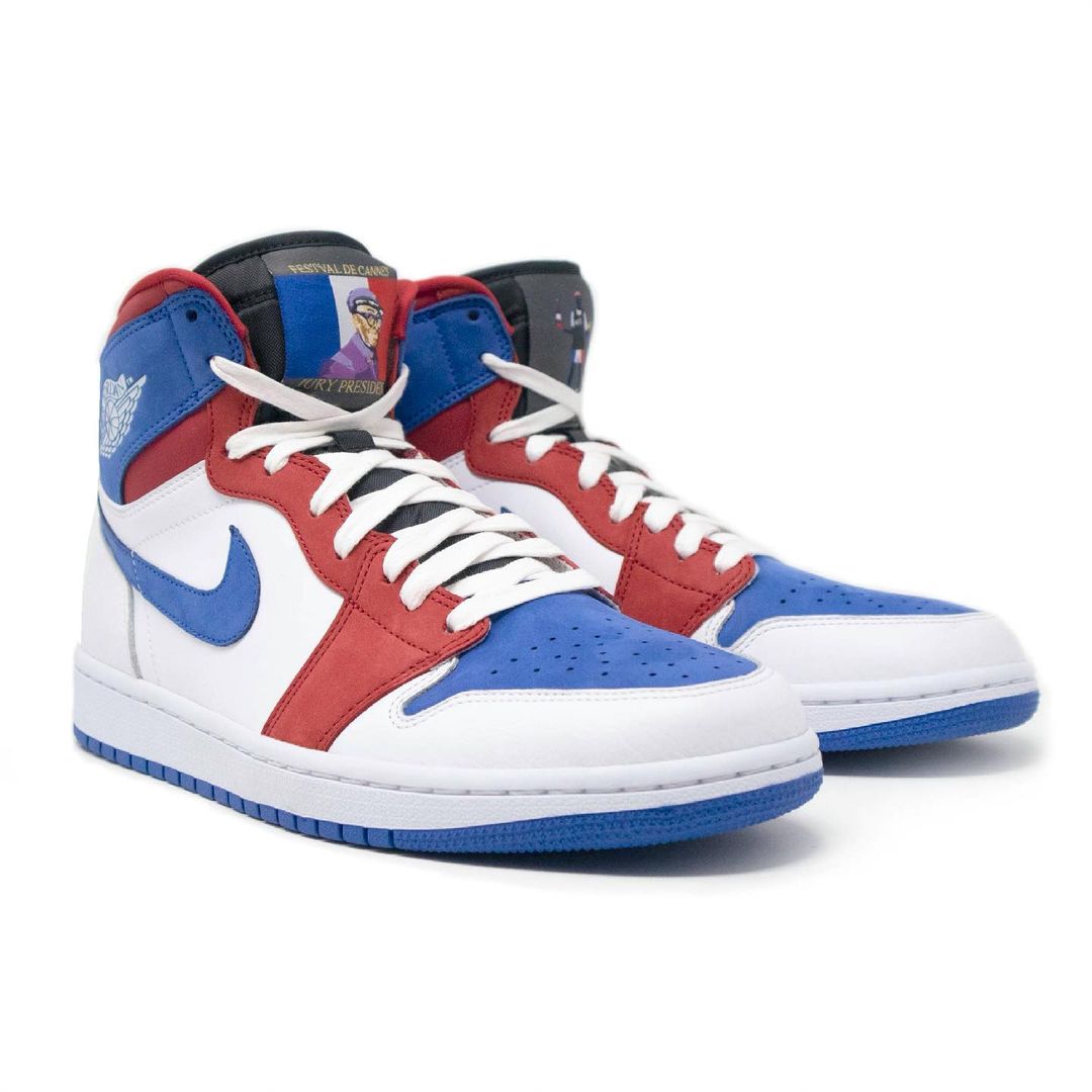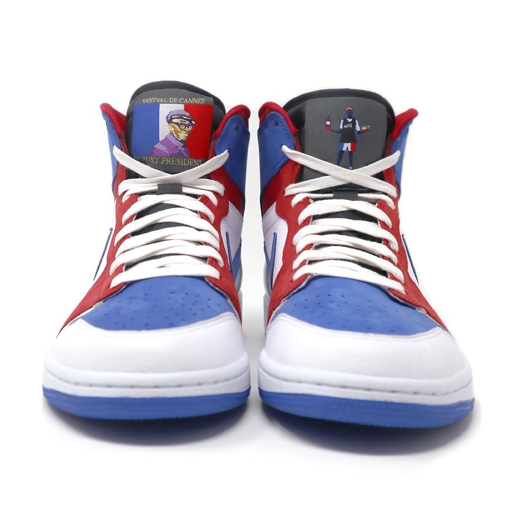 整双鞋由 Tinker Hatfield 亲自设计,以法国国旗的红白蓝三色为主调(电影节举办地位于法国戛纳)。