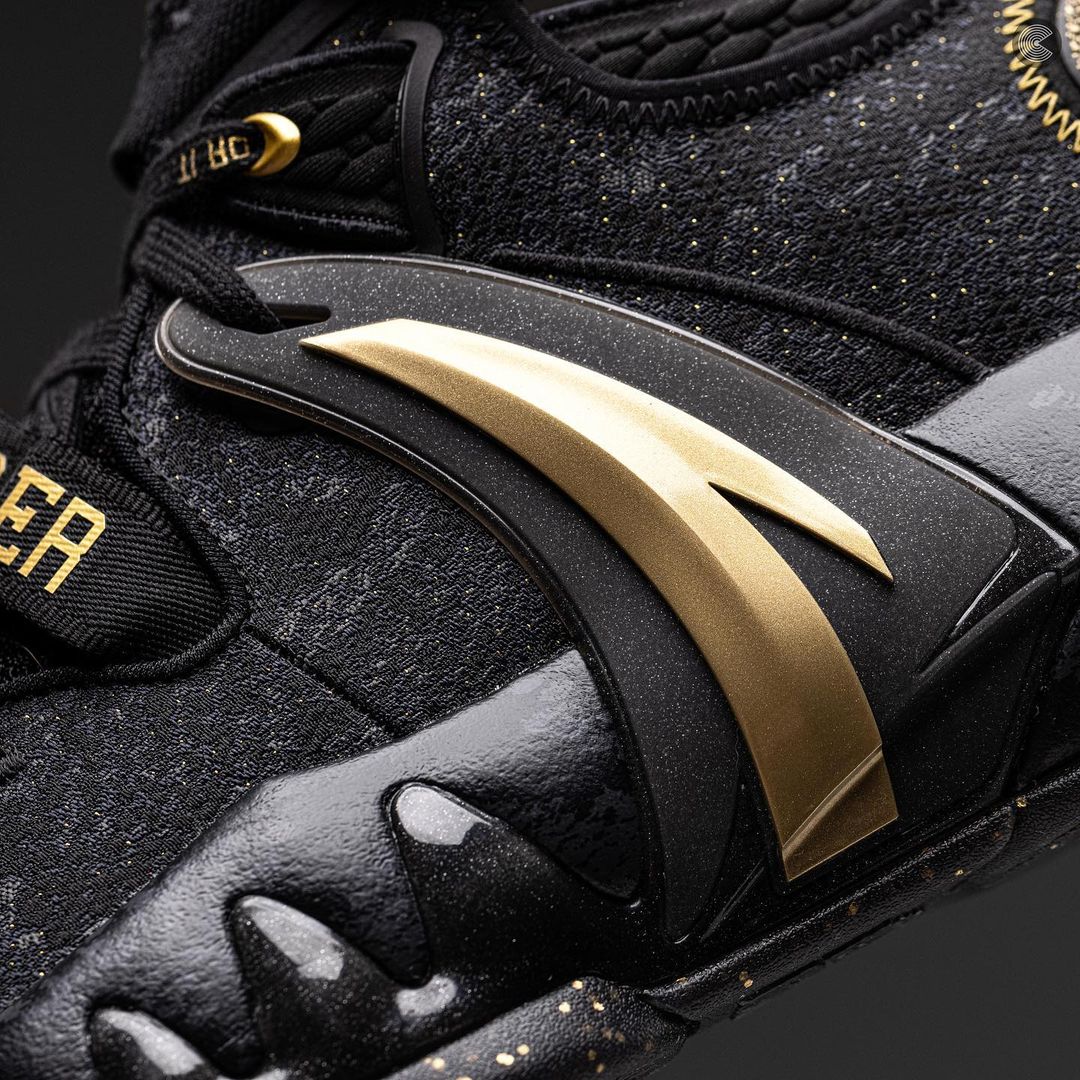 鞋侧硕大的金色安踏 Logo TPU,保证了实战的稳定性。