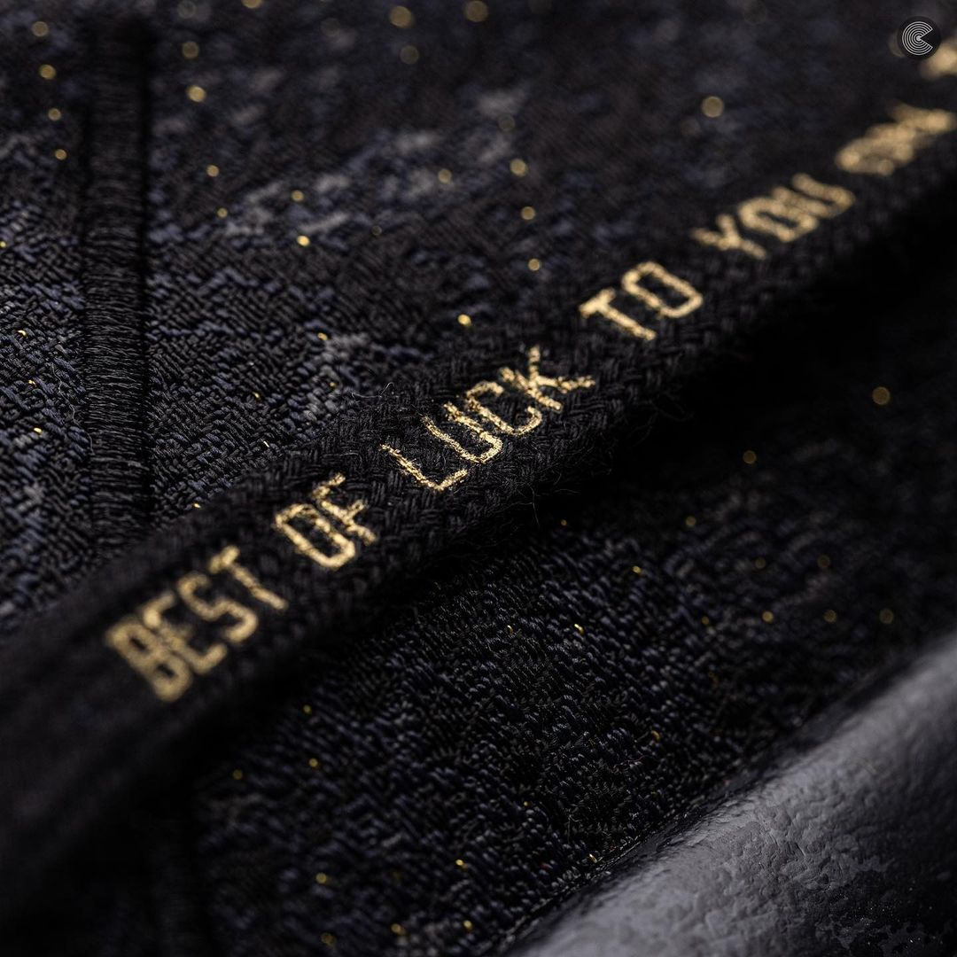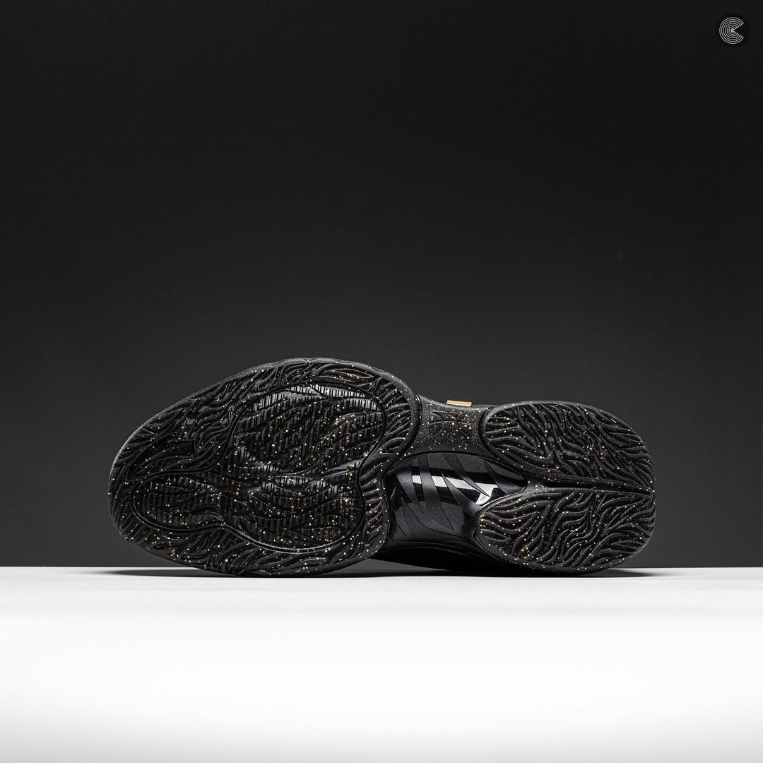 黑色外底添加金色泼墨纹理,完善了整双鞋的设计。