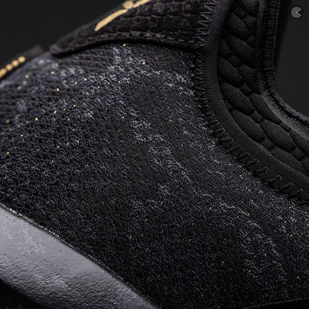 后跟处金色圆形曼巴蛇图案,彰显鞋款配色主题。