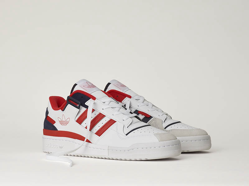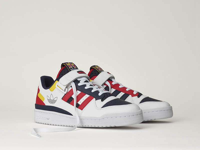 标志性的 Forum Low 鞋款和 Forum mid 设计更加亮眼,装备有可拆卸绑带,并融入白色、海军蓝、红色和黄色等配色,撞色更加大胆。
