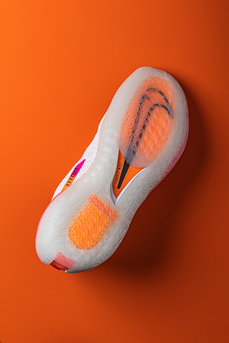 鞋垫与中底均采用 React 泡棉加持,最大亮点在于前掌内嵌 Zoom Air Strobel 与 Zoom Air 单元双层气垫,带来更加充沛的前掌加速回弹,抢占启动先机。