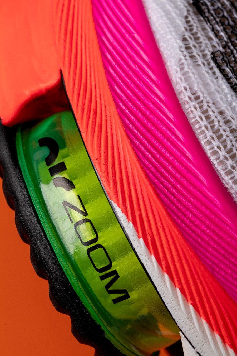 除拥有全掌 ZoomX 泡棉及全掌碳纤维板外,前掌两颗 Air Zoom 气垫更提供非凡的回弹缓震反馈,源源不断的推进力让你在比赛中跑的更快!