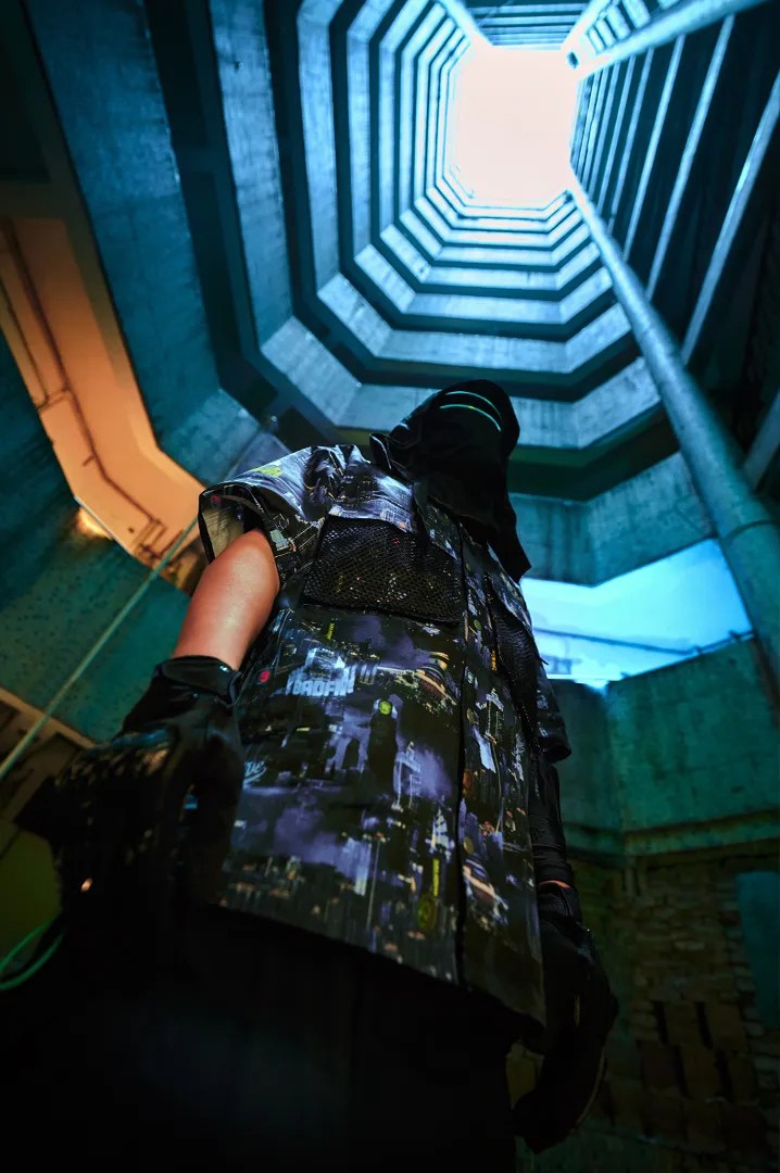 服装以赛博朋克的未来科技感与重庆地道的码头文化融合,以独特的视角表达重庆精神。
