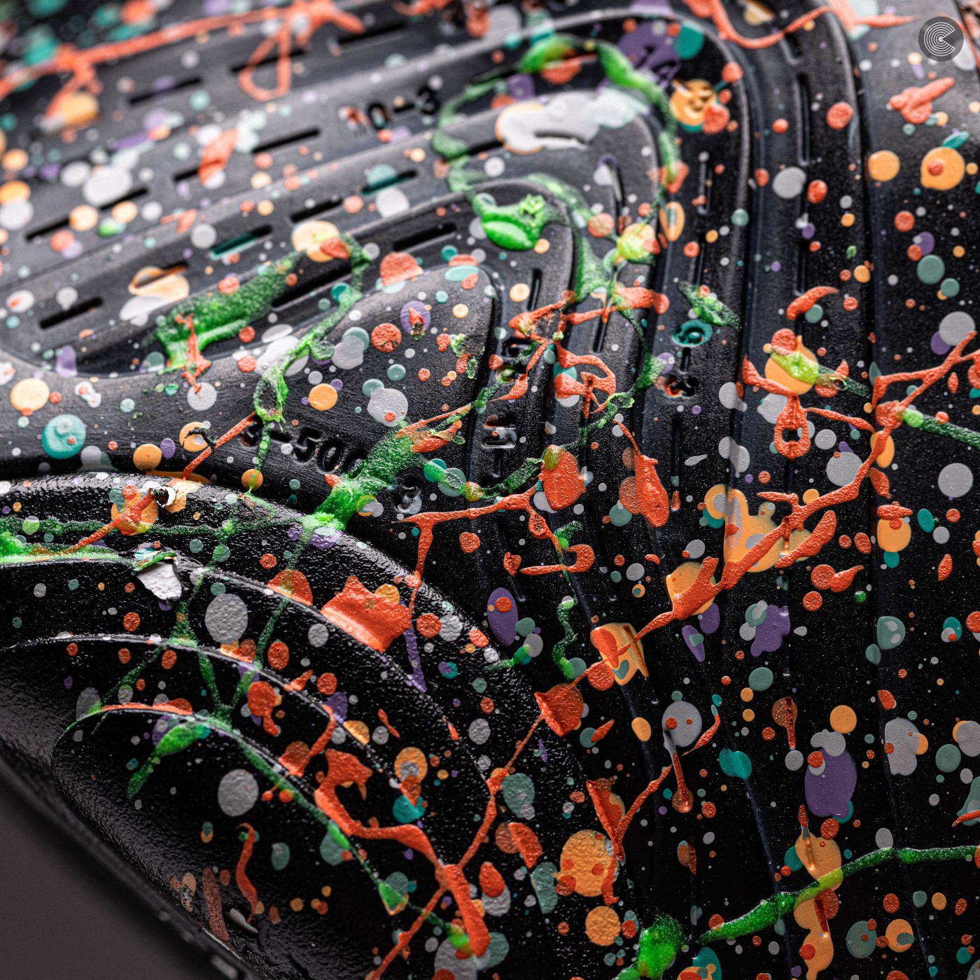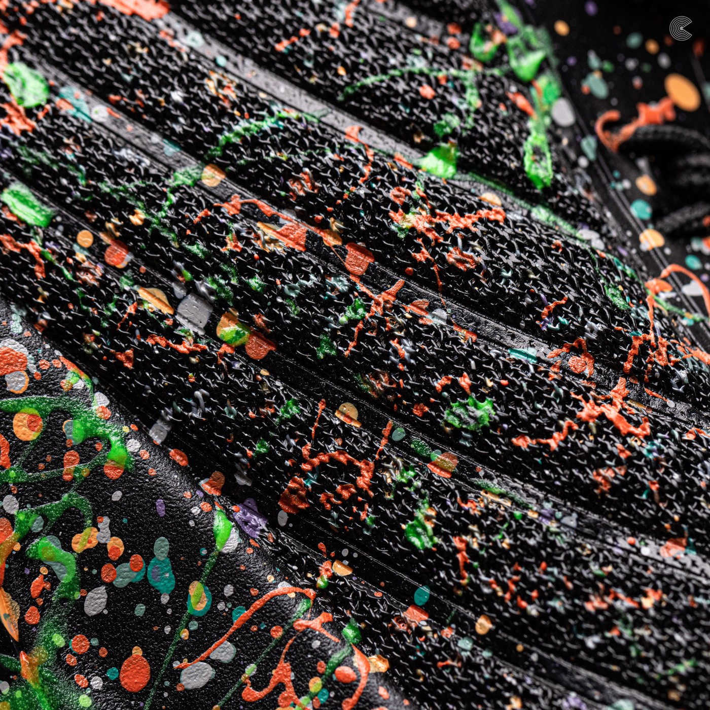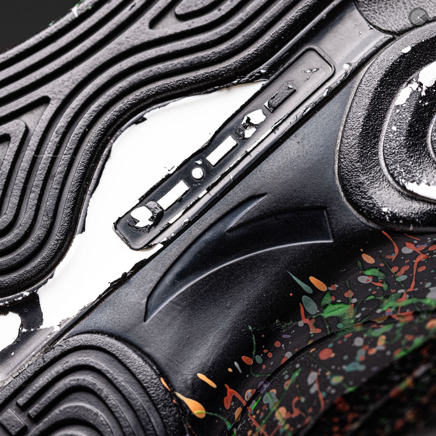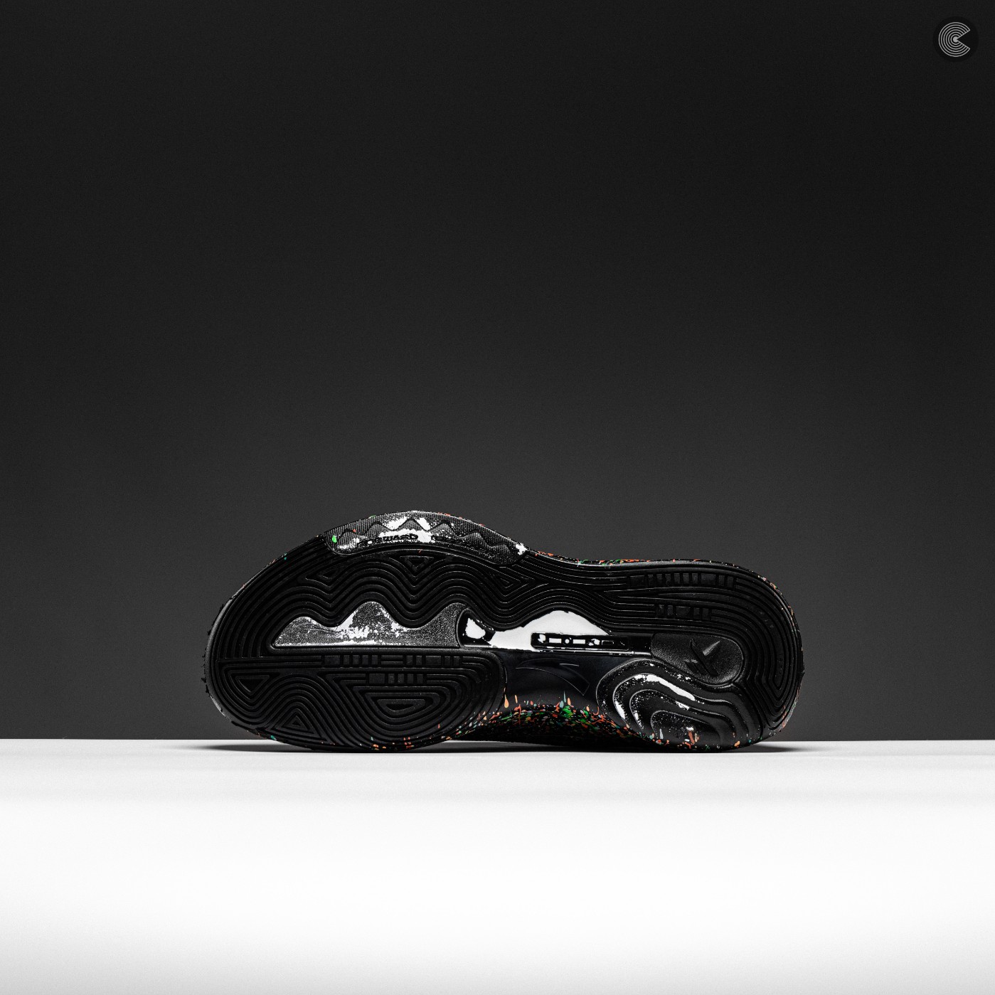 鞋身以纯黑色为底色,搭配全鞋面泼墨元素点缀,整体呈现出格外抢眼的视觉效果。