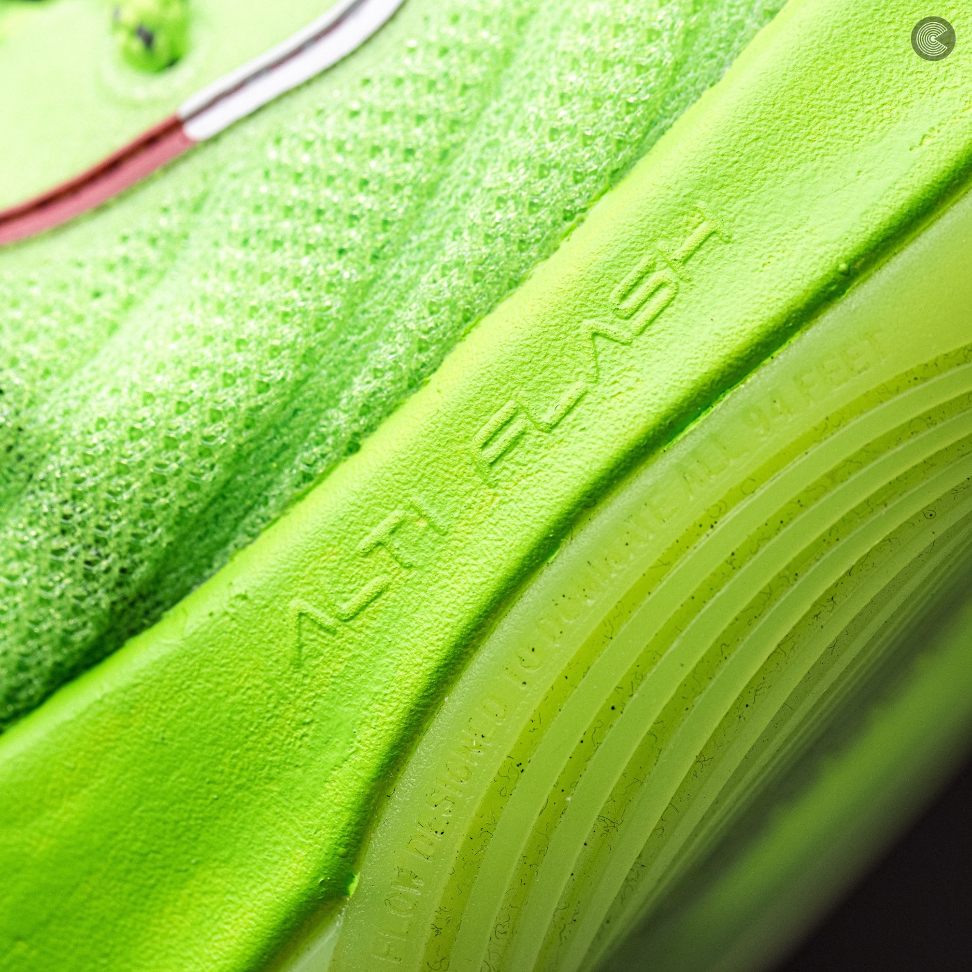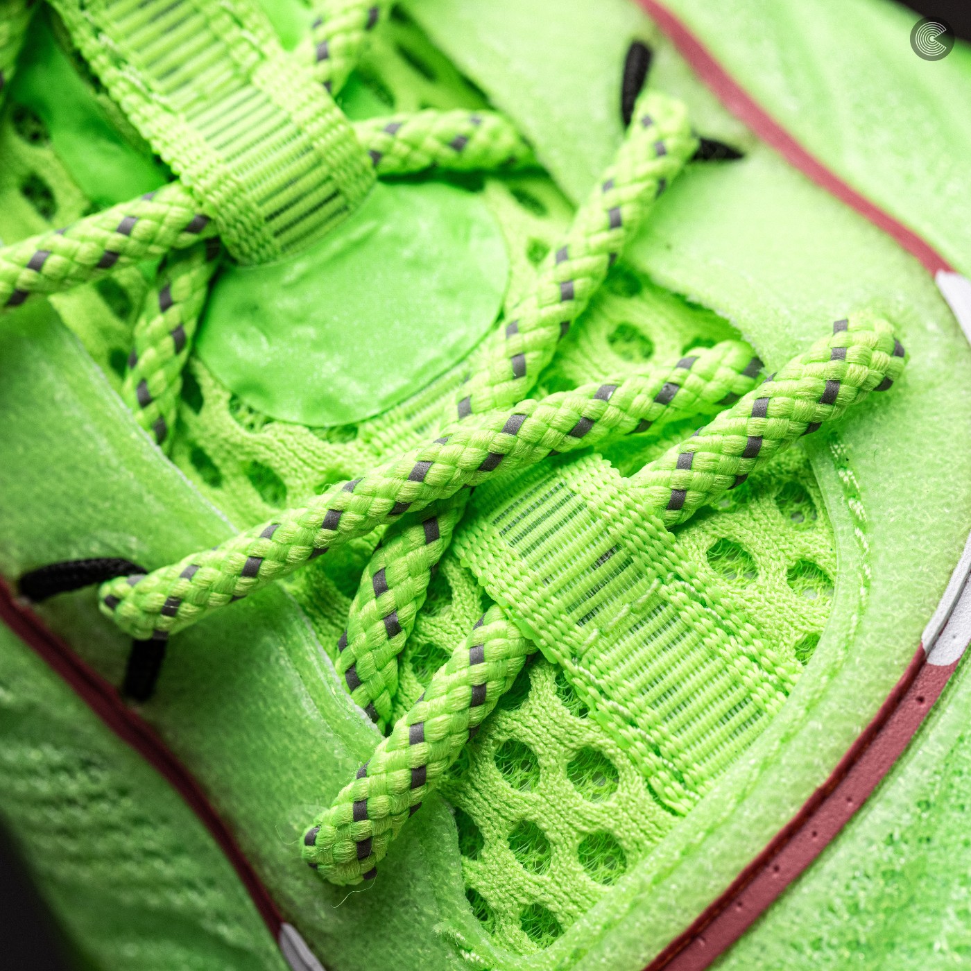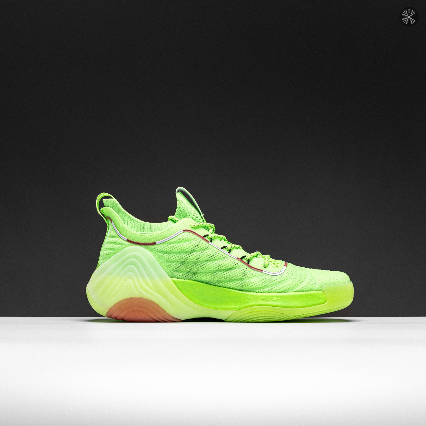 鞋身整体呈现荧光绿色,搭配领口处红白相间的条状点缀,无论场上场下一定是最亮眼的一双鞋。