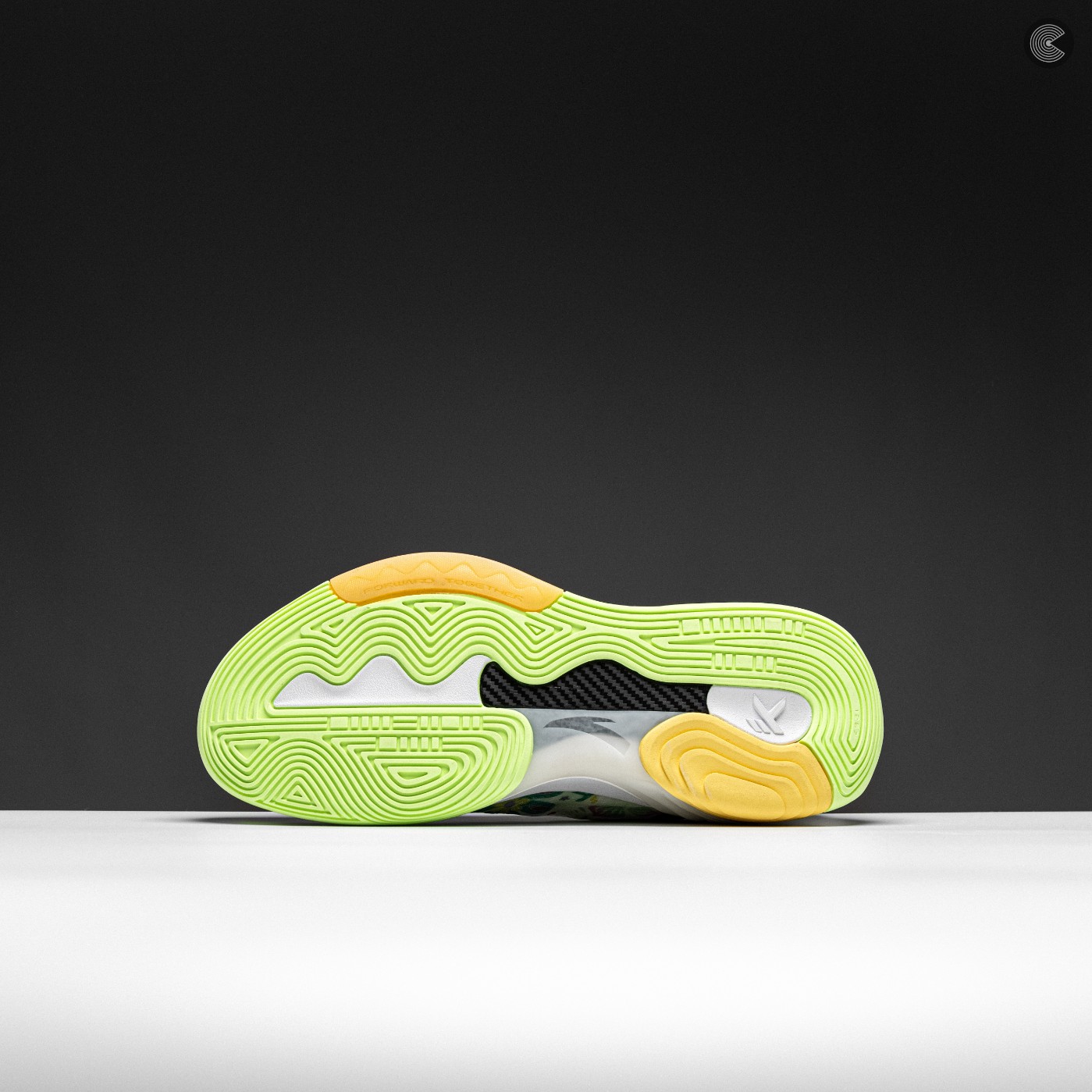 炫彩 Logo 置于鞋头位置, 为球鞋增添细节。