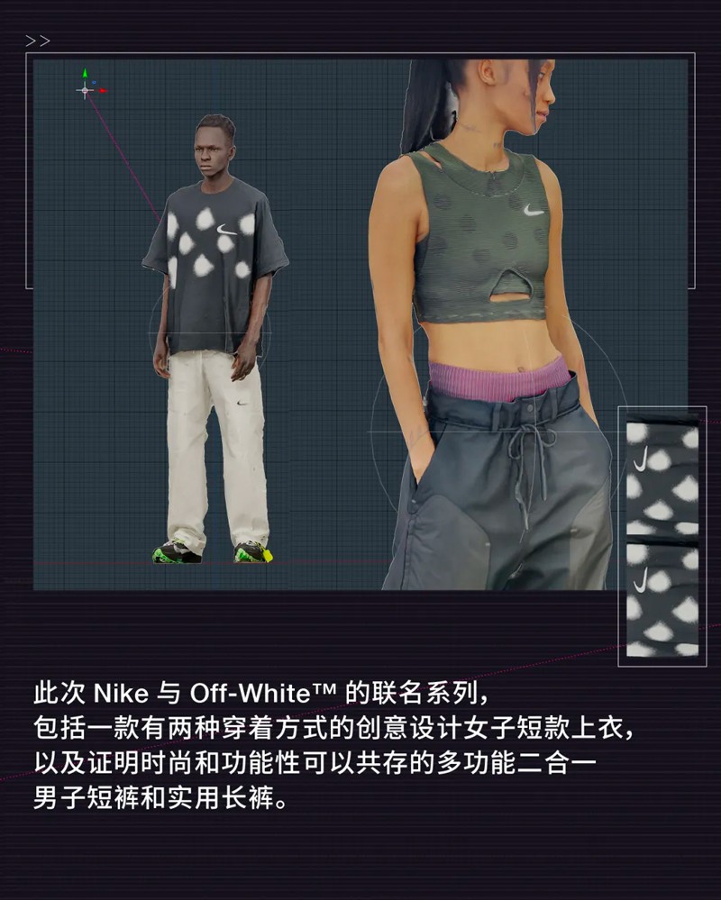 此外服饰单品以渲染特效图的形式首次现身,设计风格与去年春季联名相似,特殊的 Swoosh Logo 格外醒目。