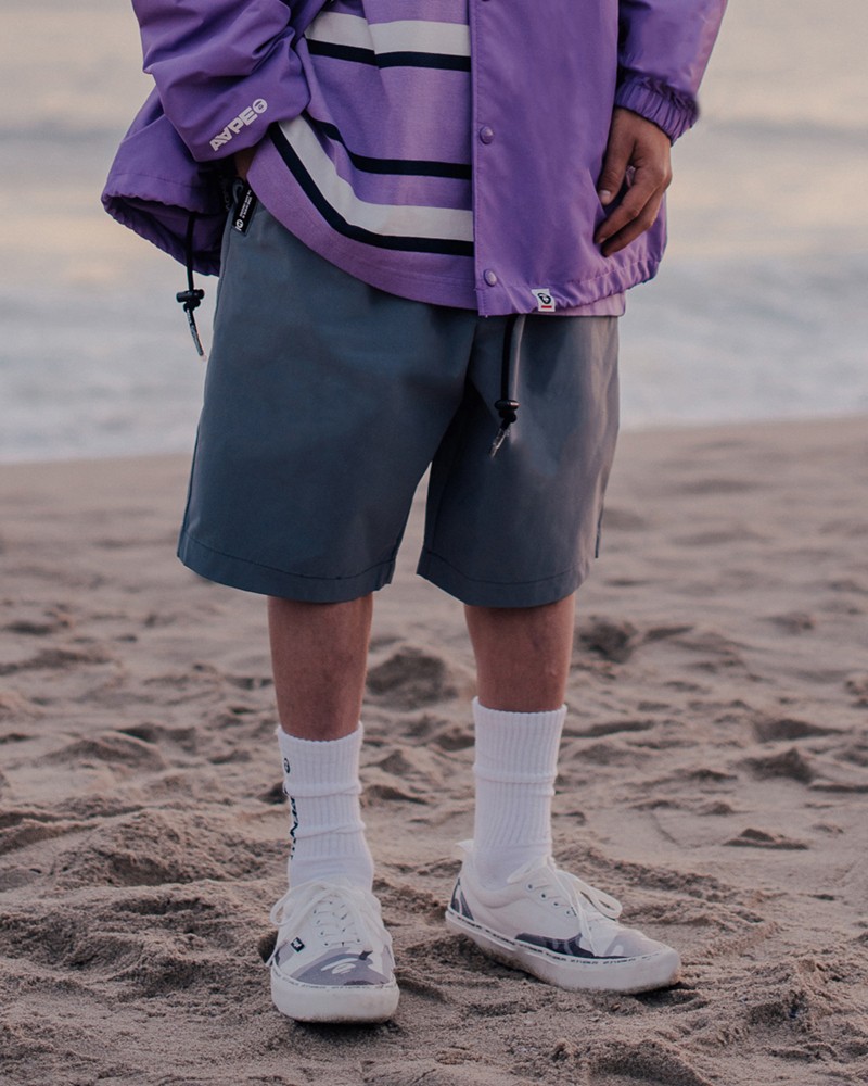 一体式鞋面覆盖极具辨识度的 AAPE 迷彩印花和 LOGO 标识,鞋底采用轻质发泡材料一体成型,兼具轻量化与舒适。