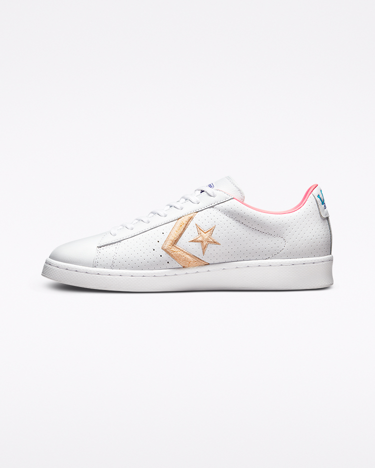 第四款 “LOLA” Pro Leather 以白色为主色,配合金色的 Logo 和压印字体,细节十分丰富。