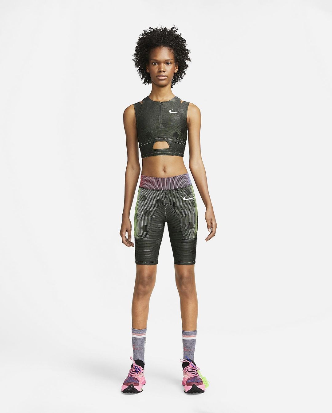 AMBUSH x Nike 灵感来自美国和亚洲次文化的混合,将日本摩托车文化与动漫文化结合,带来吸睛的摩托服饰,将亮粉与荧光绿大胆搭配拼接,驾驭起来难度不小。