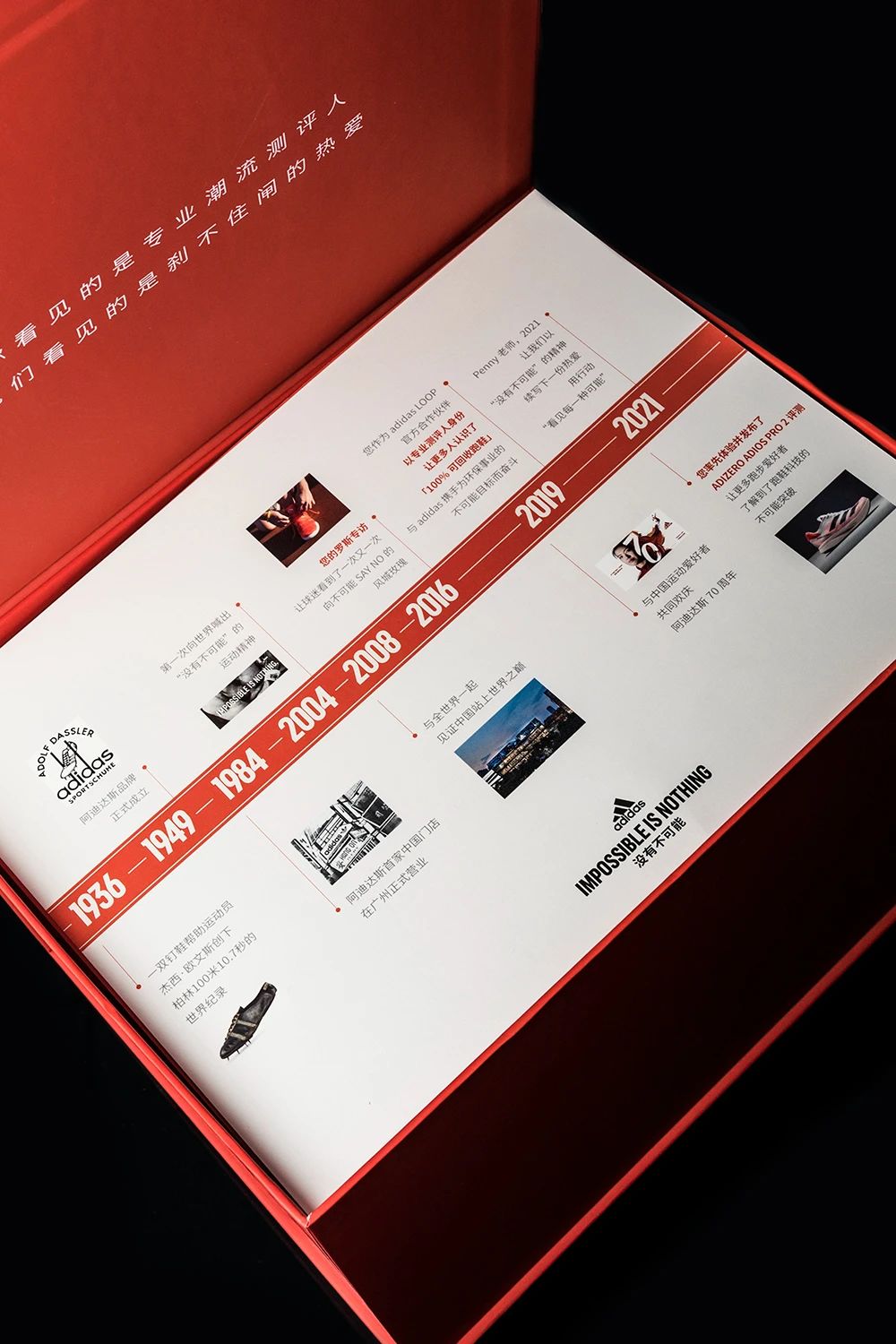 adidas 打造这样的高规格礼盒,目的就是为了将「没有不可能」的精神传递下去。