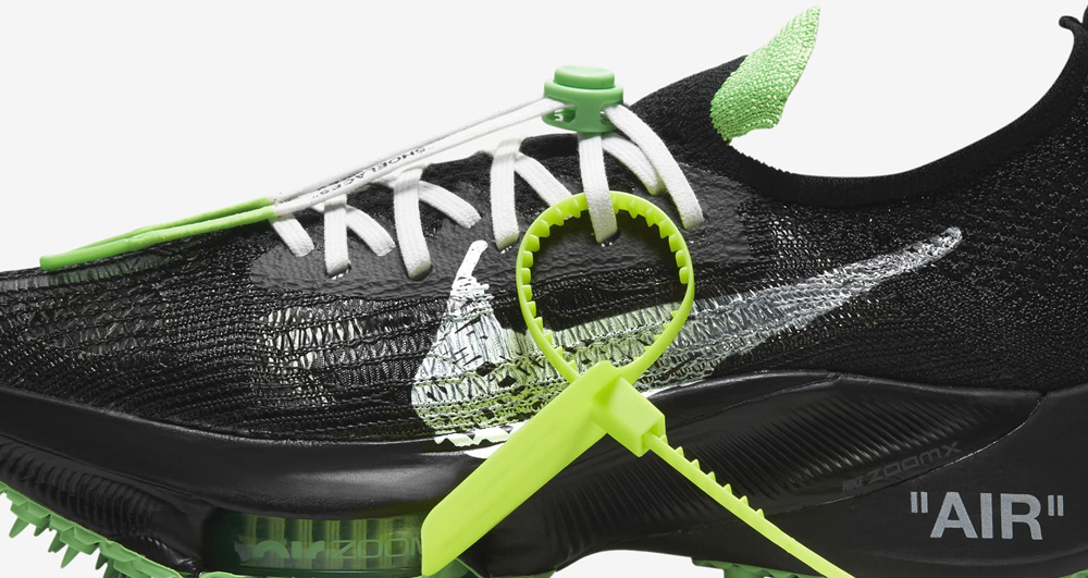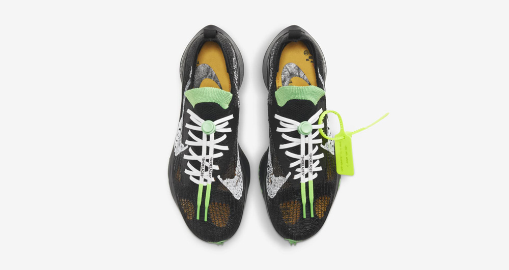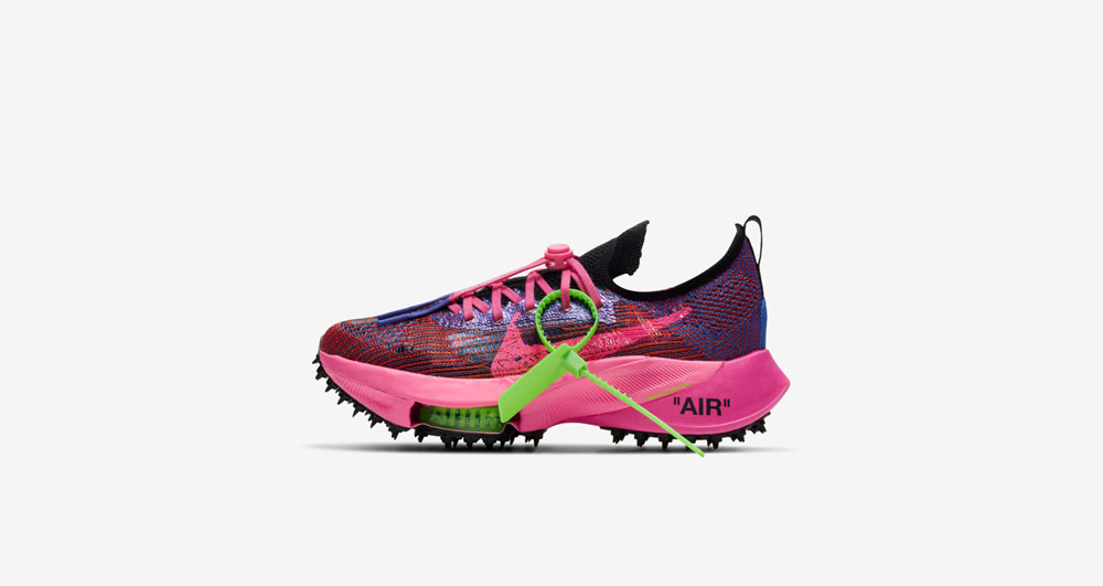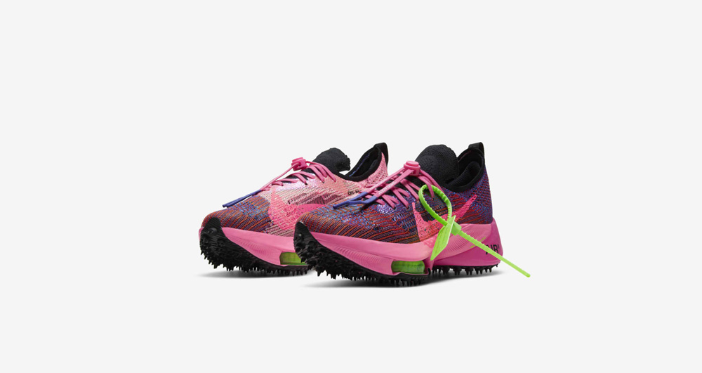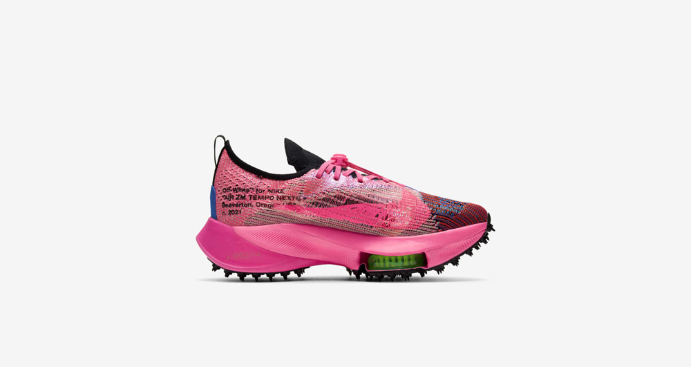 这次联名包含短袖 T 恤、短裤、长裤和女子短款上衣等服饰单品,还有一双以顶级跑鞋为原型的 OFF-WHITE x Nike Air Zoom Tempo NEXT%。