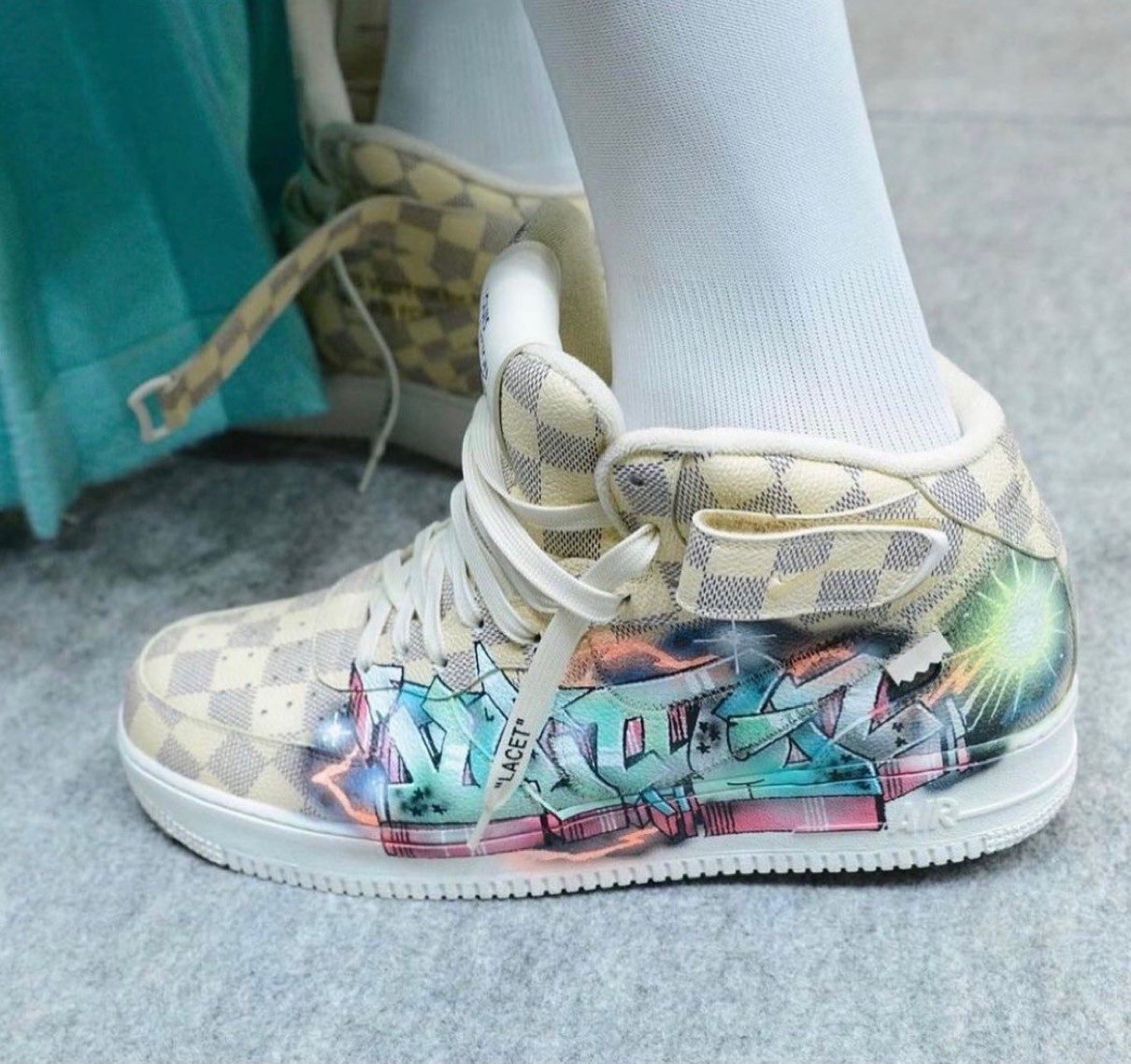 在经典 Nike Air Force 1 鞋型基础上,Louis Vuitton 老花、OFF-WHITE 标志性设计元素加持。