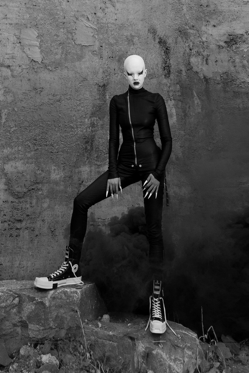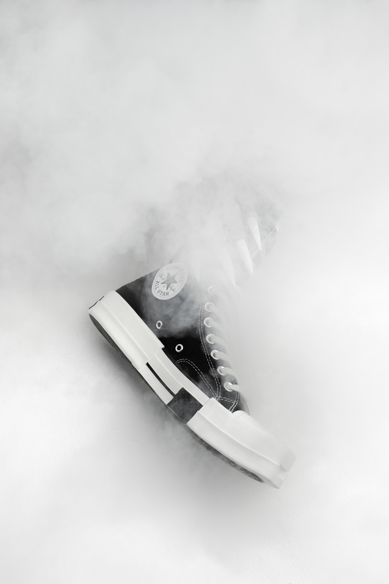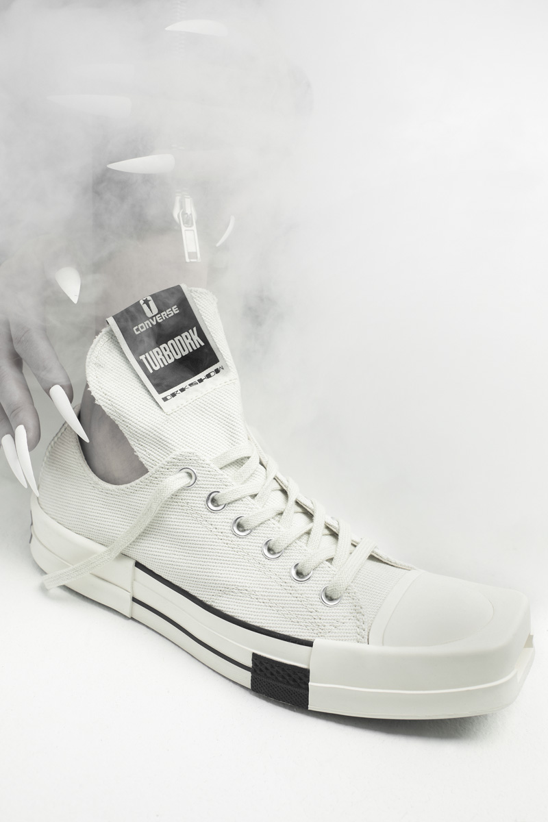 设计沿袭了 Rick Owens 独特的美学和对经典的颠覆,将 Converse 经典鞋型的传统元素打破再造,加长的鞋舌和首次出现的方形鞋头瞬间改变了整双鞋的气质。
