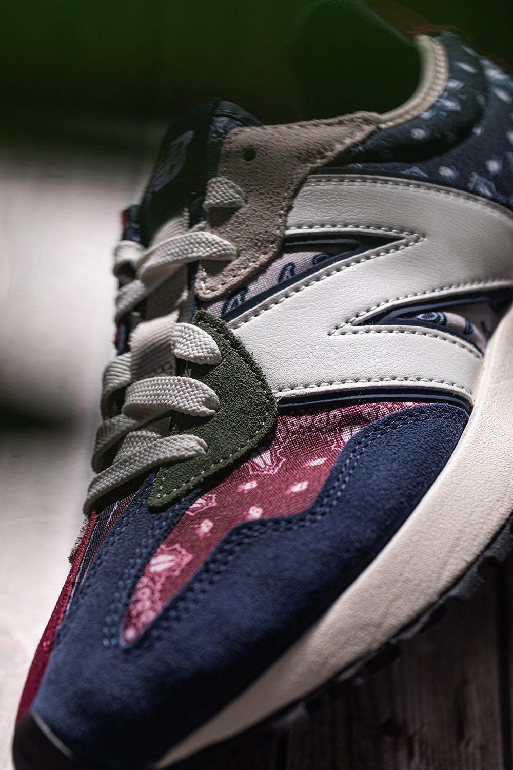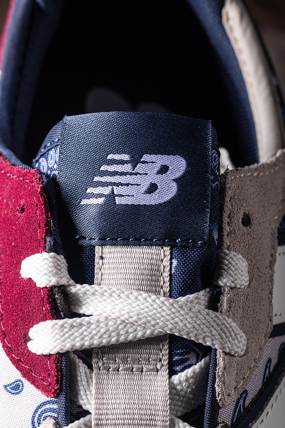 鞋身中部的巨大 New Balance「N」字 Logo 也被腰果花环绕。