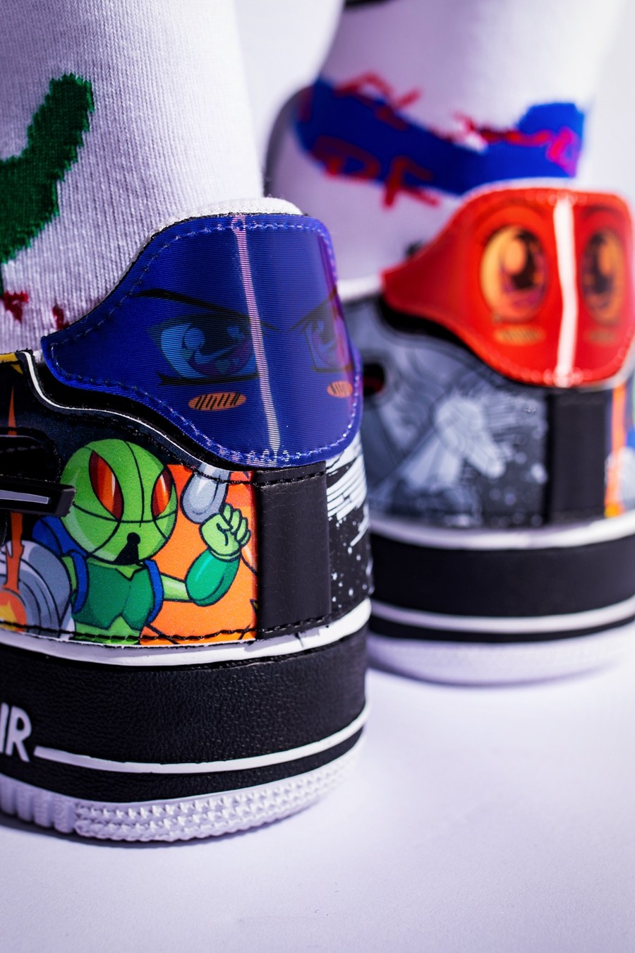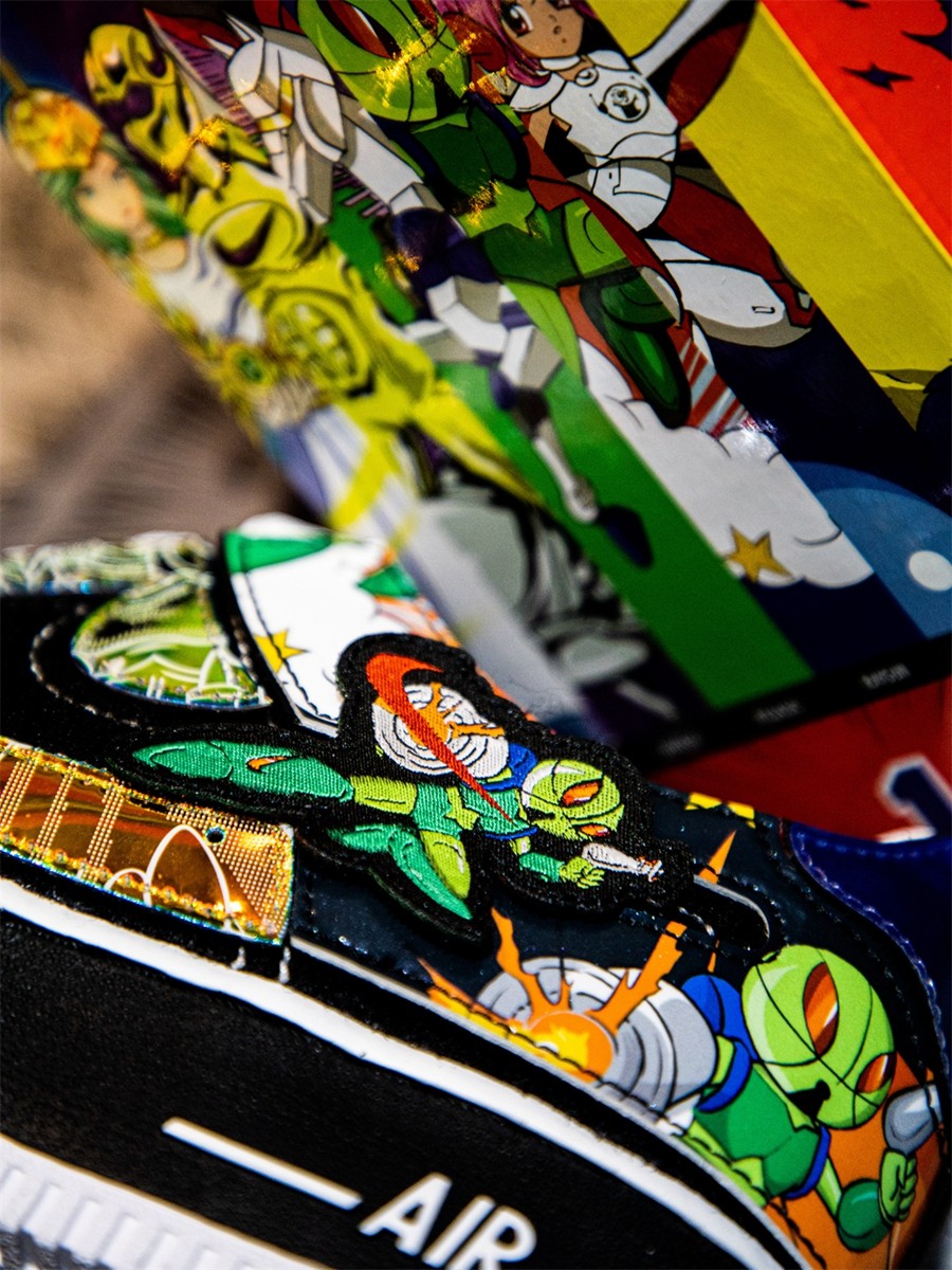 双脚内侧通过二次元卡通形象,重现耐克名字的含义 - 胜利女神。