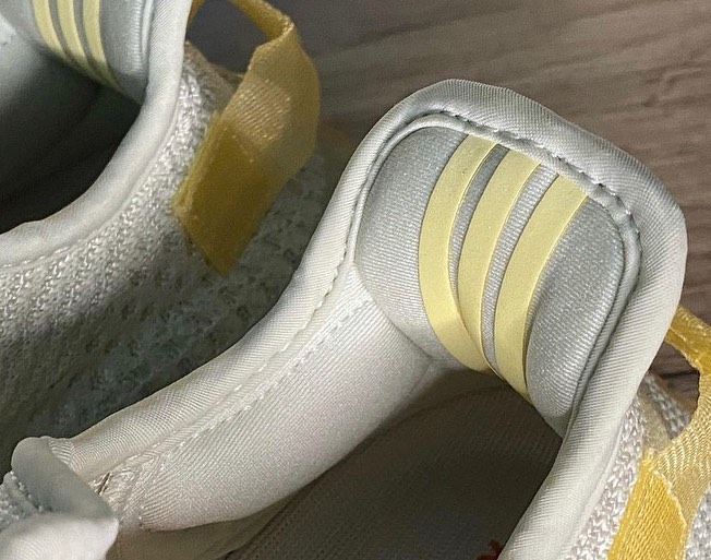 看似简简单单的白色编织鞋面自带 UV 变色效果,在正常光线下鞋面呈现出白色,淡黄色的外底和后跟鞋提像是氧化效果。