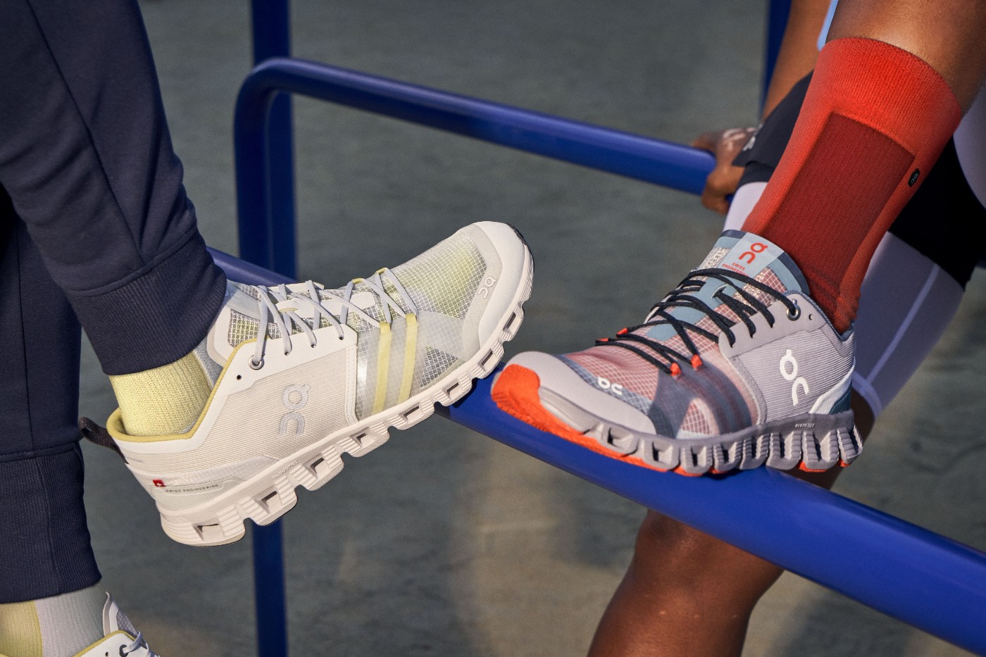 半透明网纱面料经过加固处理,保证了舒适度和耐用性,搭配亮色运动袜,让每一步都释放鲜明个性。