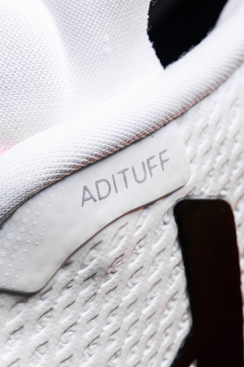 在最强调耐磨的前掌和鞋眼区域,采用了 ADITUFF 耐磨材料,以此提升耐久性。