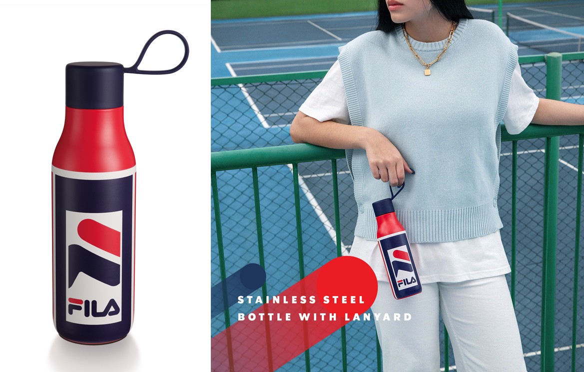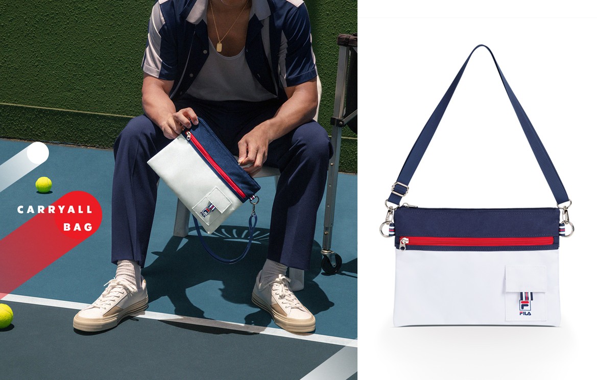 贯穿每款单品的 FILA 经典三色条纹,象征网球比赛的速度感。