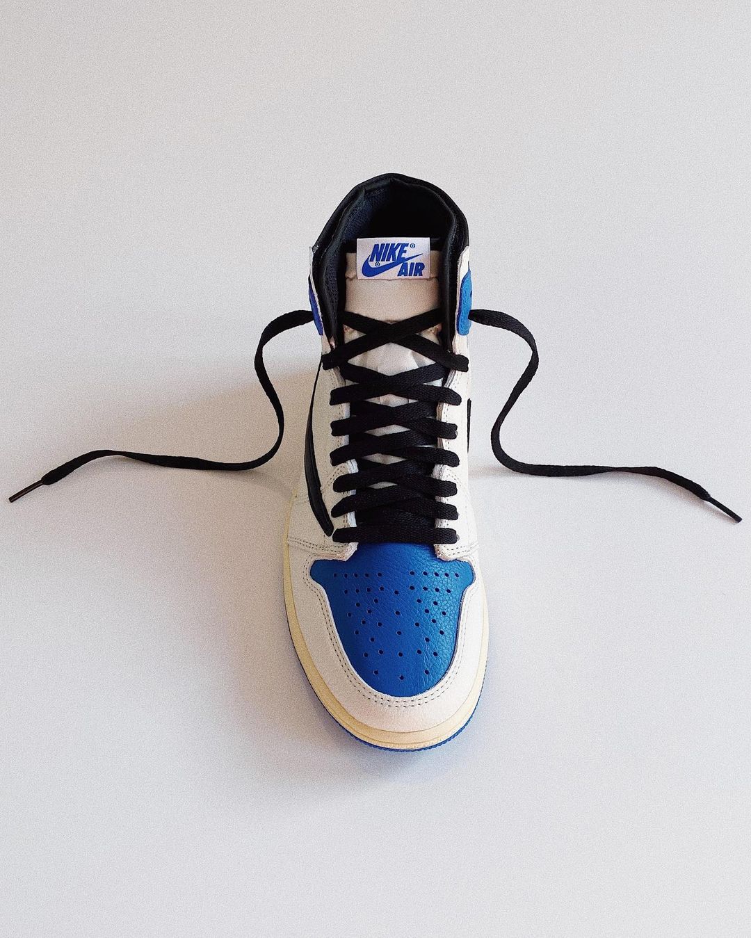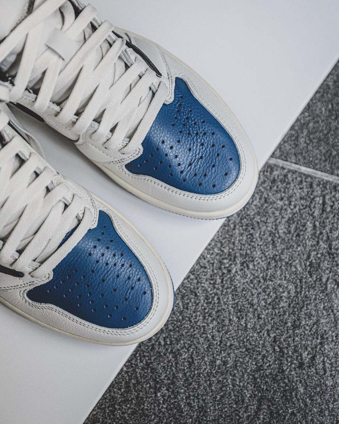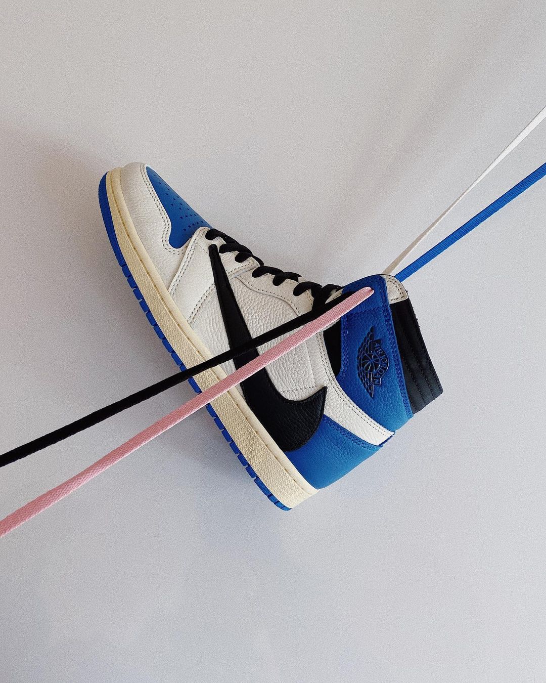 联合藤原浩、Travis Scott 和 Jordan 三方的闪电倒钩 Travis Scott x fragment x Air Jordan 1 Hi “Military Blue”,绝对是今年第一双真正意义上的超重量级球鞋。