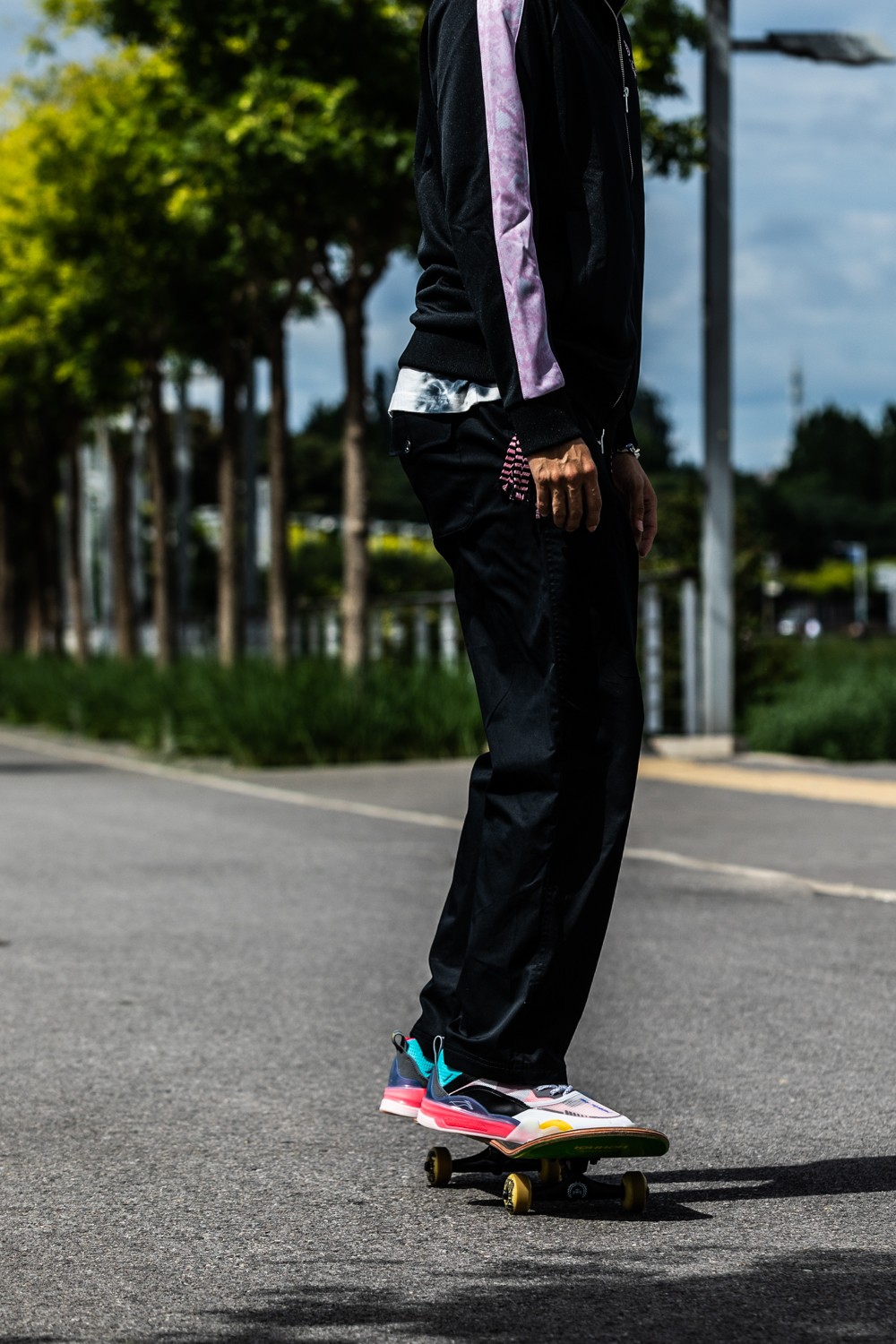 丰富的材质搭配能牢牢锁定双脚,并且能在与滑板磕碰摩擦时提供必要保护。