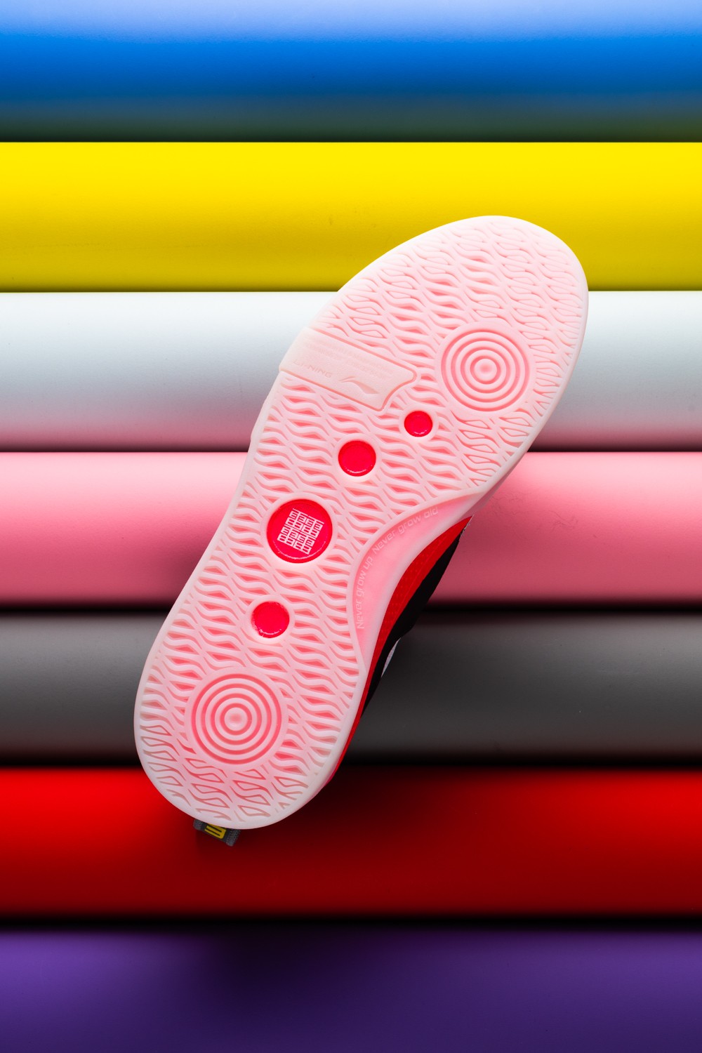 外底采用水晶橡胶材质,与惟吾 Pro 类似,以李宁 Logo 变体作为防滑纹路。