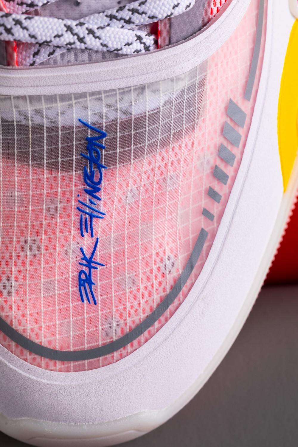 鞋头蝉翼材质上带有 Erik Ellington 签名字样,尽显签名鞋身份。