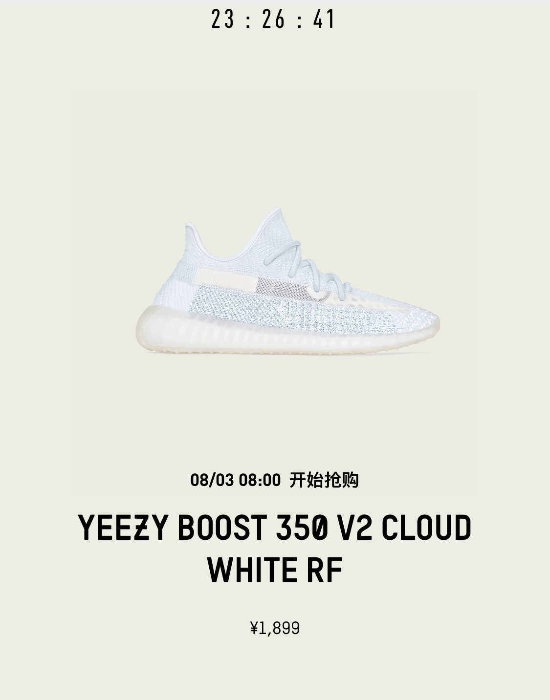 可以看出,原本于 2019 年正式发售的 Yeezy Boost 350 V2 “Cloud White” RF 将在明天补货。