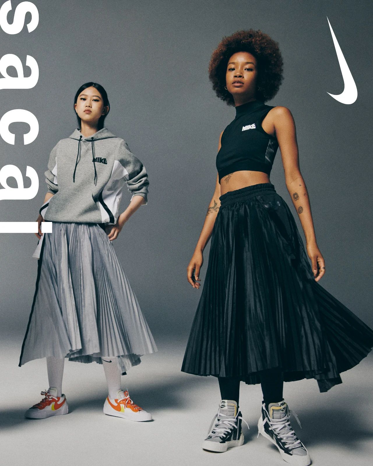 全新 sacai x Nike 系列包含夹克、半裙、运动裤、帽衫、超短款上衣和紧身裤等单品。