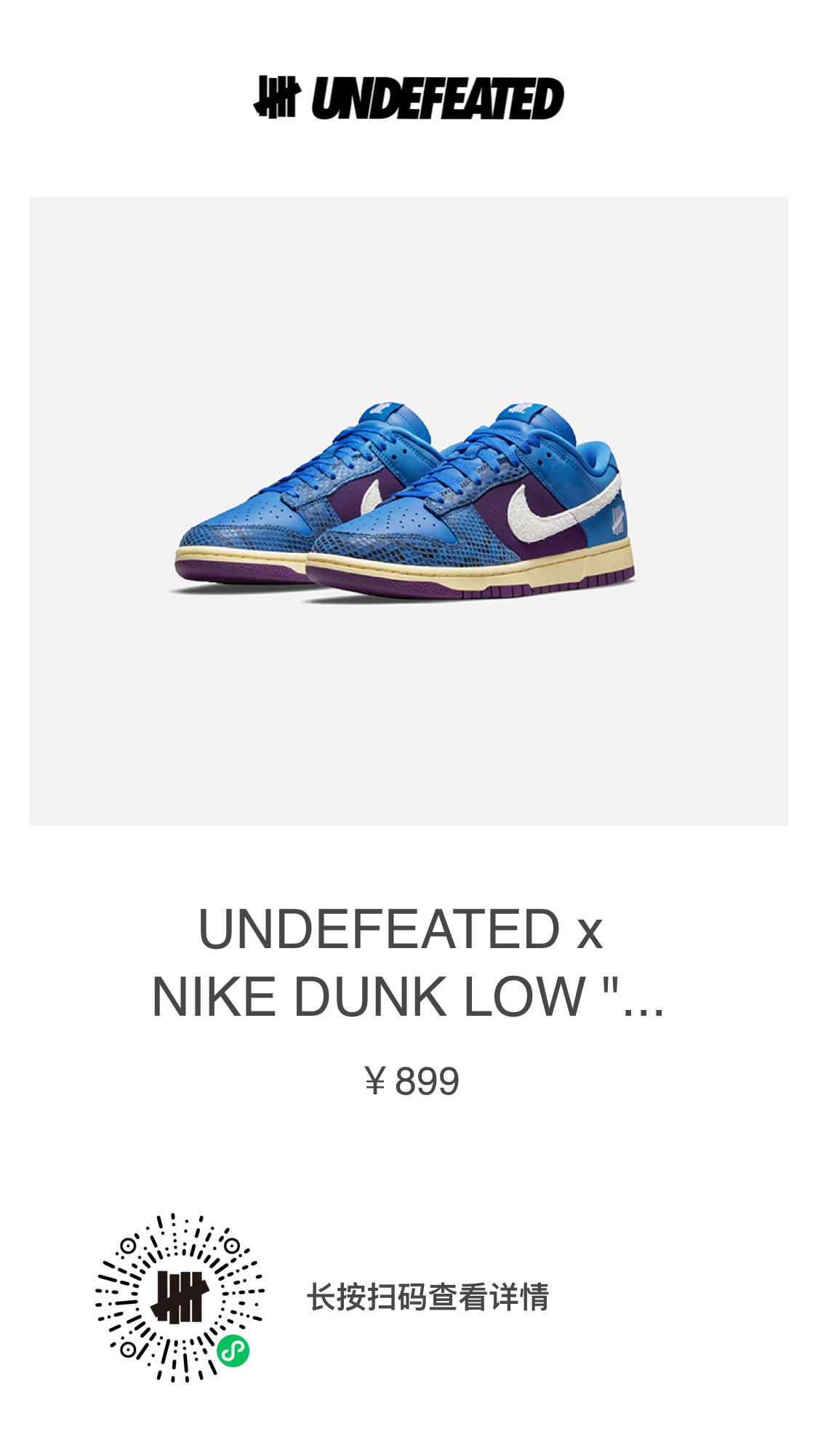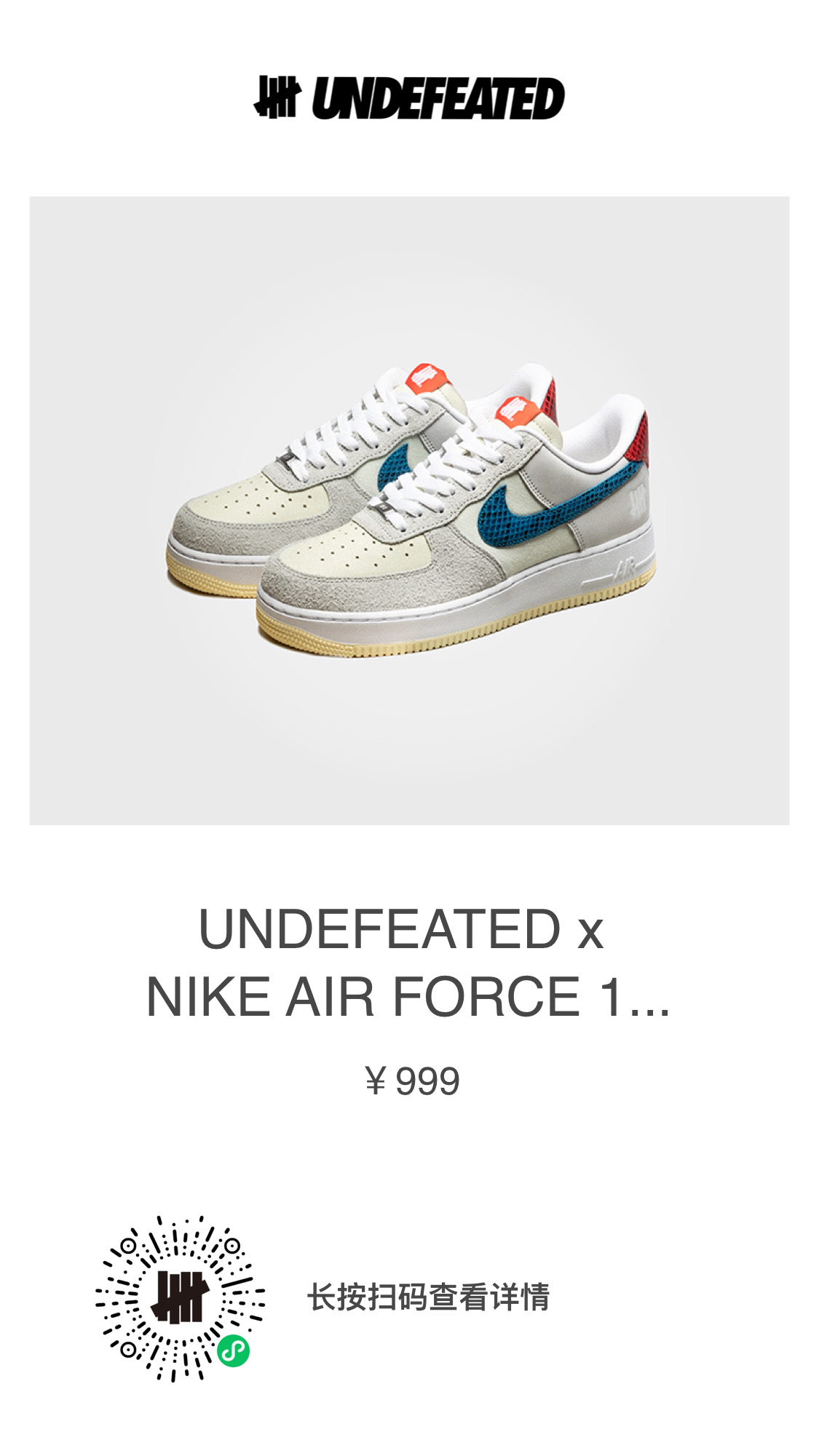 六月已经发售了首波两款 UNDEFEATED x Nike Air Force 1 Low 和 Dunk Low 鞋款,目前二级市场均有溢价,入手难度不小。