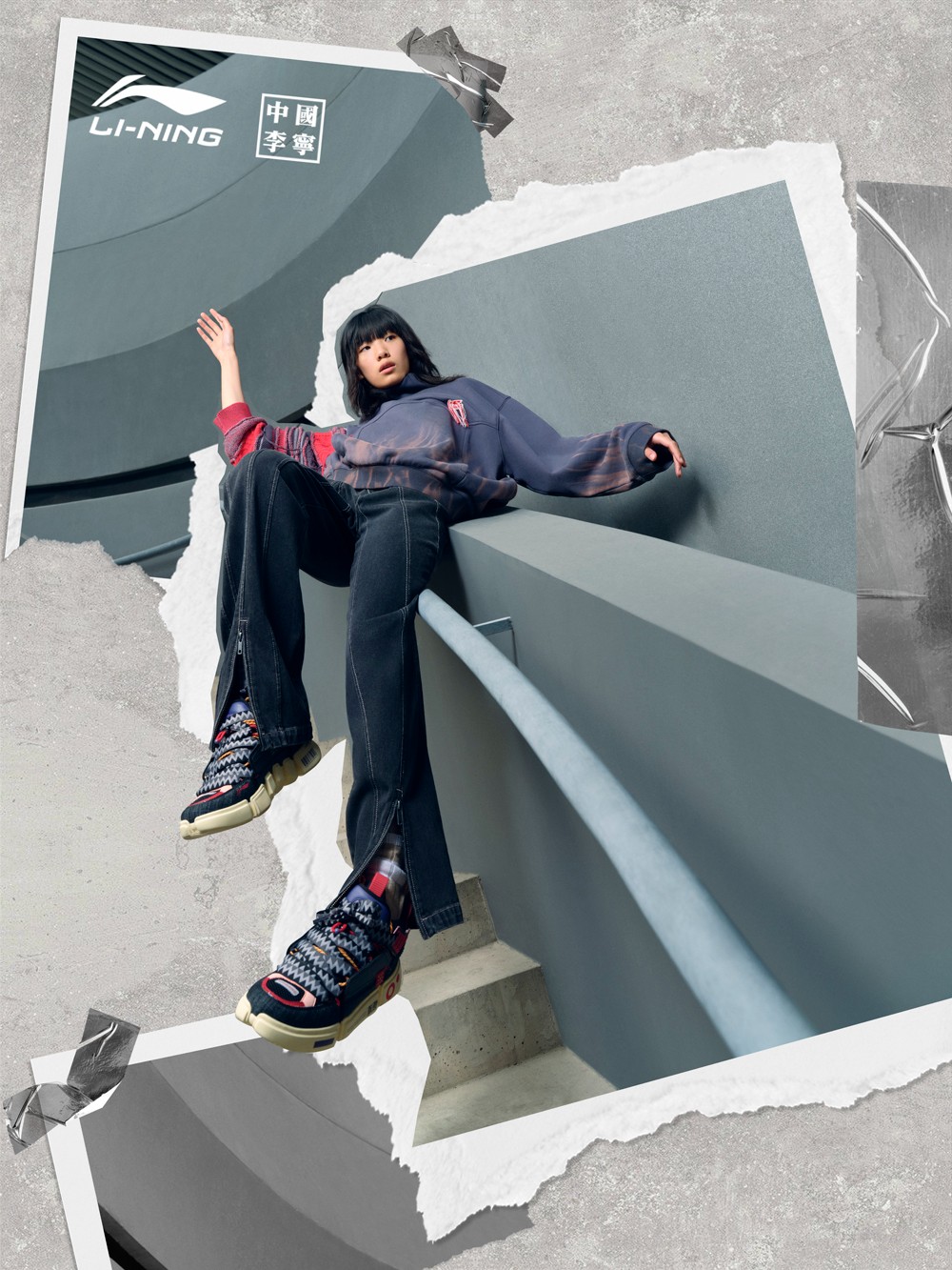 这次中国李宁又有全新视觉元素,以彩色贴纸风格的印花以及全新李宁 Logo 等图案点缀。
