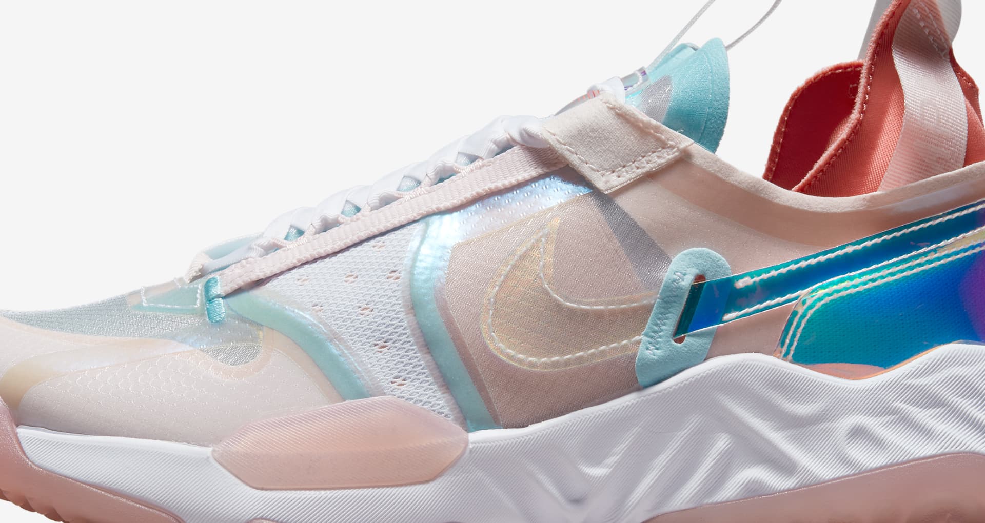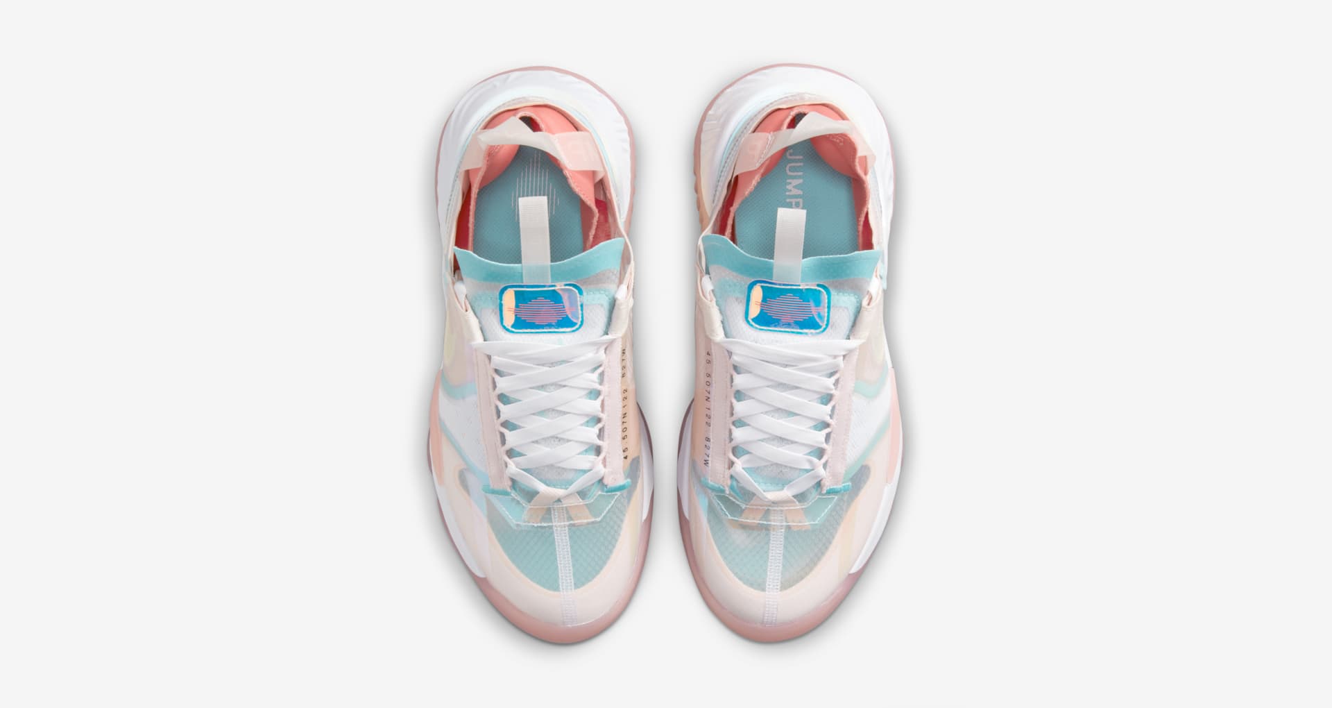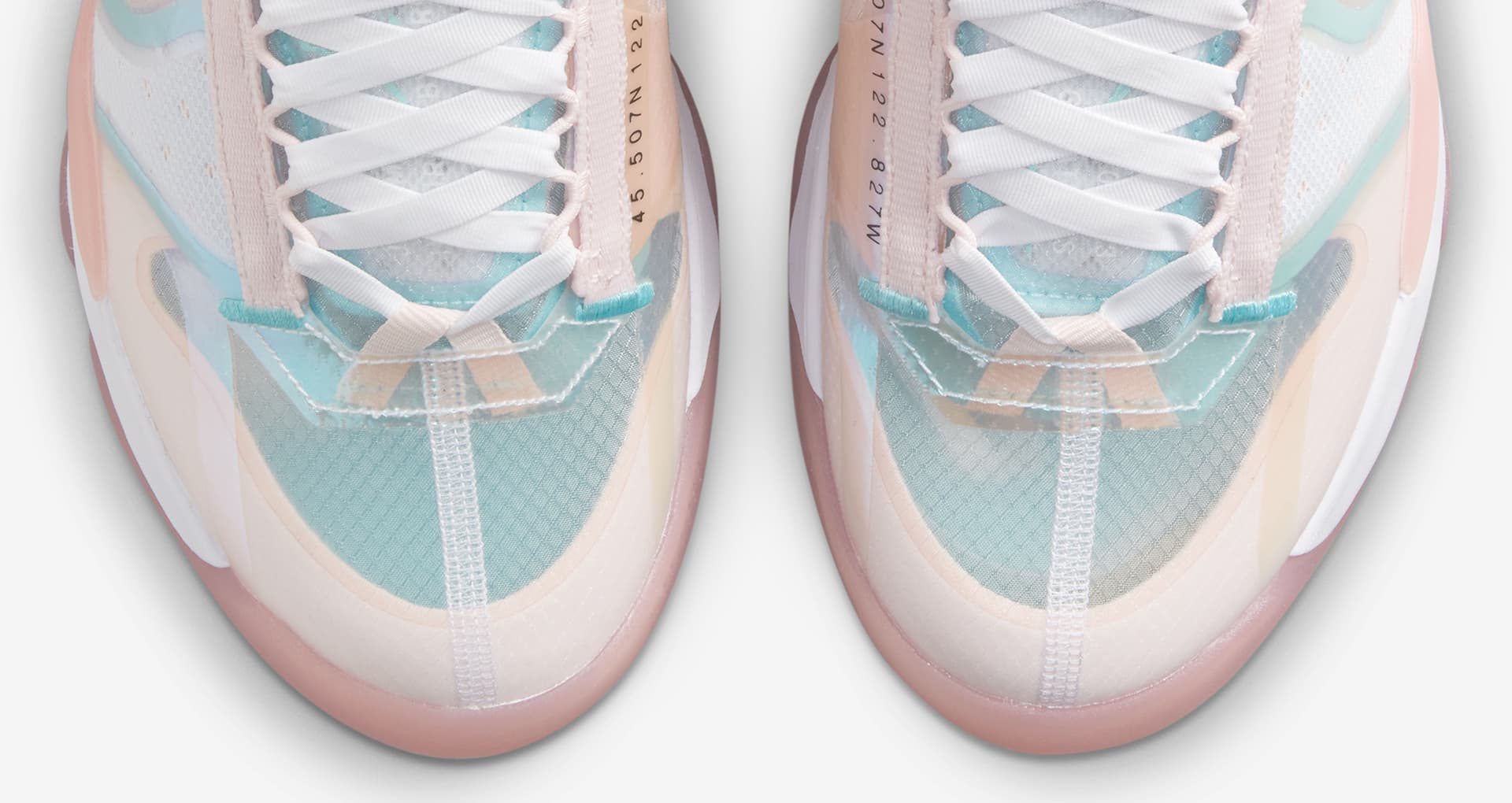 鞋面采用蝉翼材质打造,以浅粉色为主,浅蓝与白色点缀细节部分,整体鞋身活力十足。