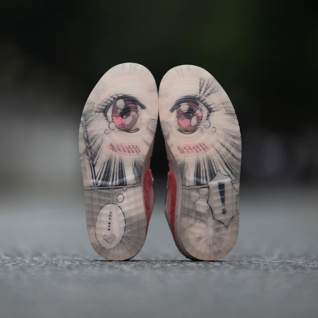半透明外底内依旧采用二次元漫画图案,粉色的眼睛细节格外吸睛。