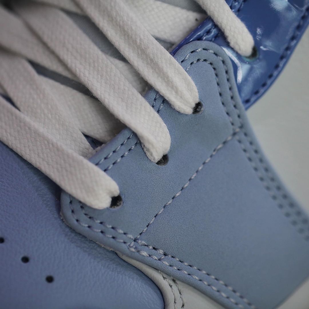 蓝色款整体鞋身采用白色为底,淡紫色与浅蓝共同点缀鞋身。