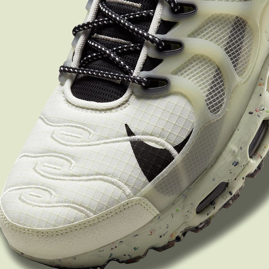 TPU 框架下方的巨型 Swoosh 环绕鞋面,凸显与常规 Air Max Plus 不同。