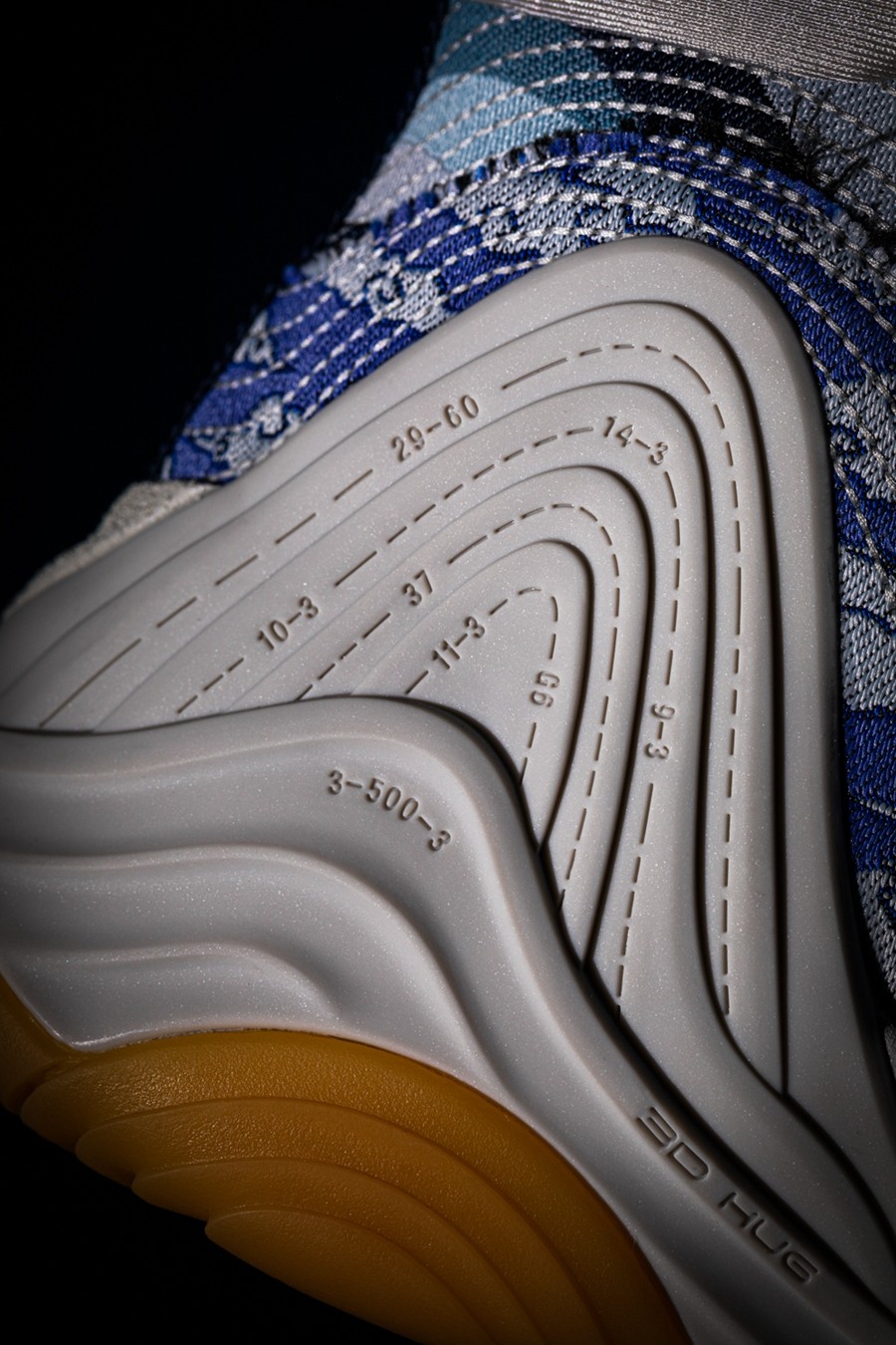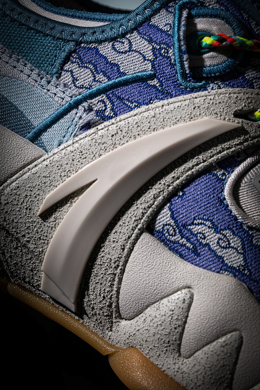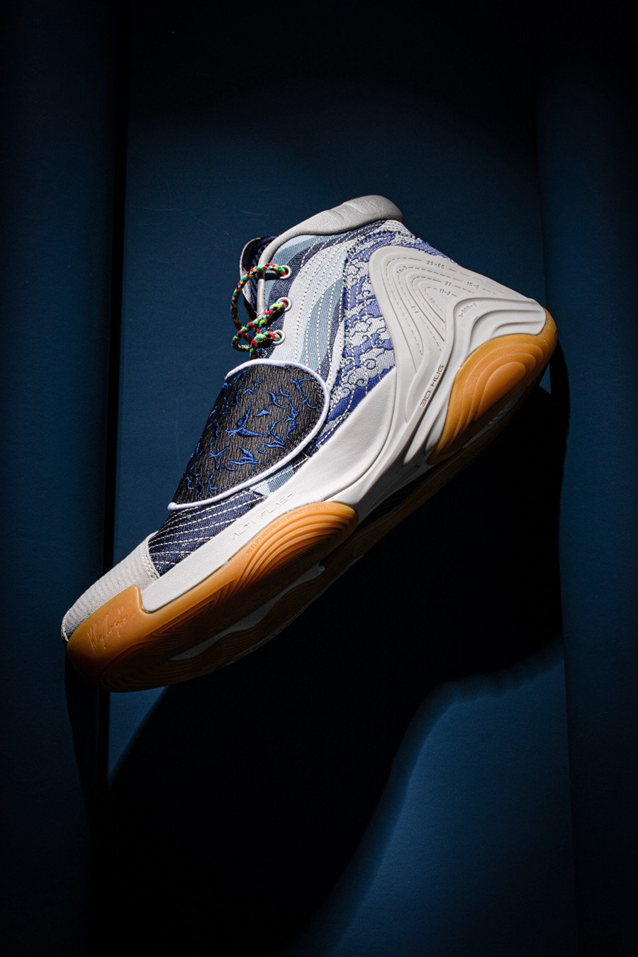 中底 ALTI FHASH 缓震与鞋头 3D HUG 稳定支撑模块,采用浅灰色特殊工艺包覆,营造传统文化承载的历史厚重感。