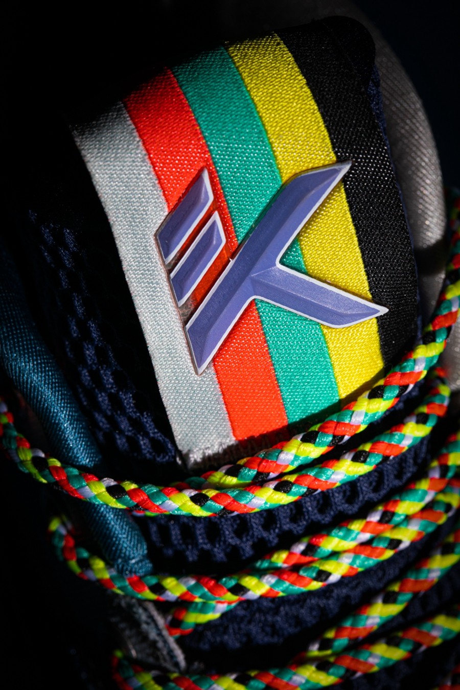 象征「穿针乞巧」的五彩绳设计,通过鞋带系统与后跟呼应。