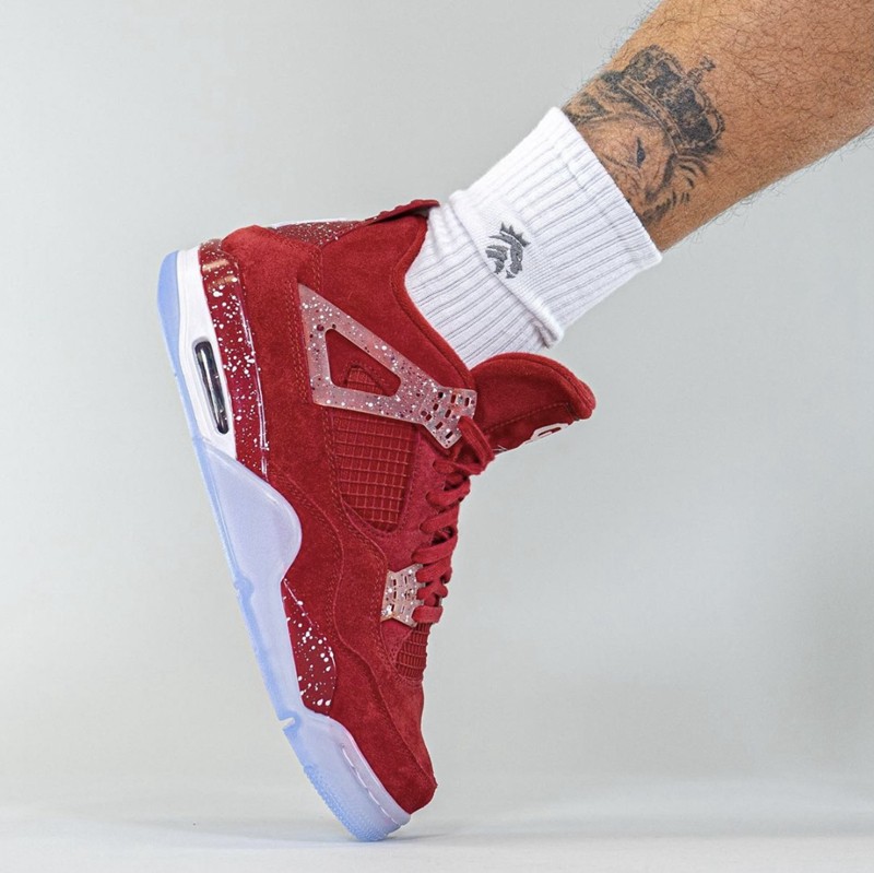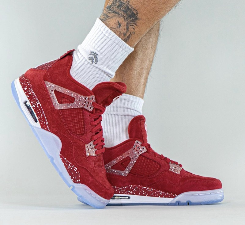 球鞋以俄克拉荷马大学的球衣配色为灵感,鲜艳的红色遍布鞋身,搭配麂皮材质,整体的奢华质感显露无疑。