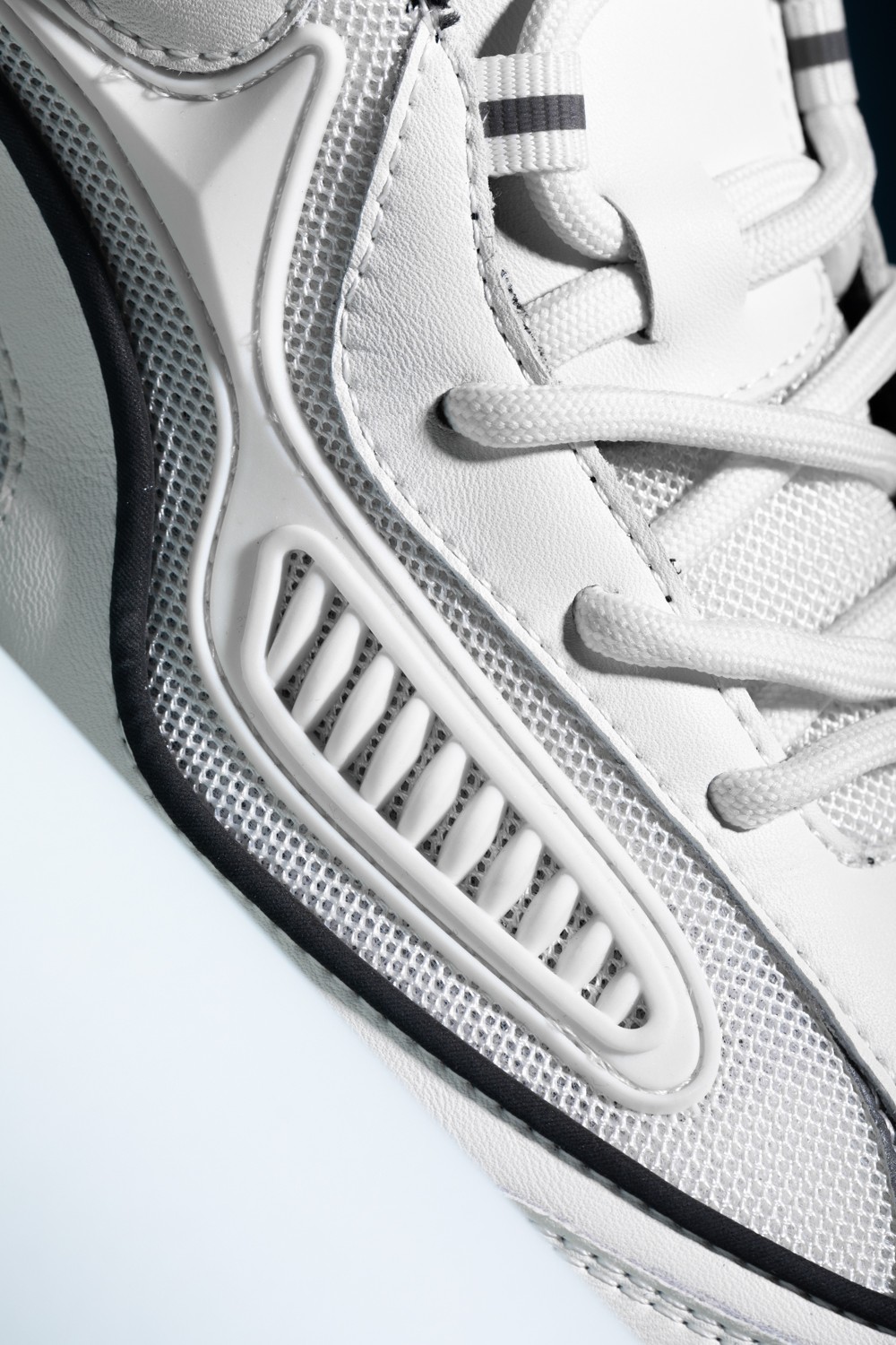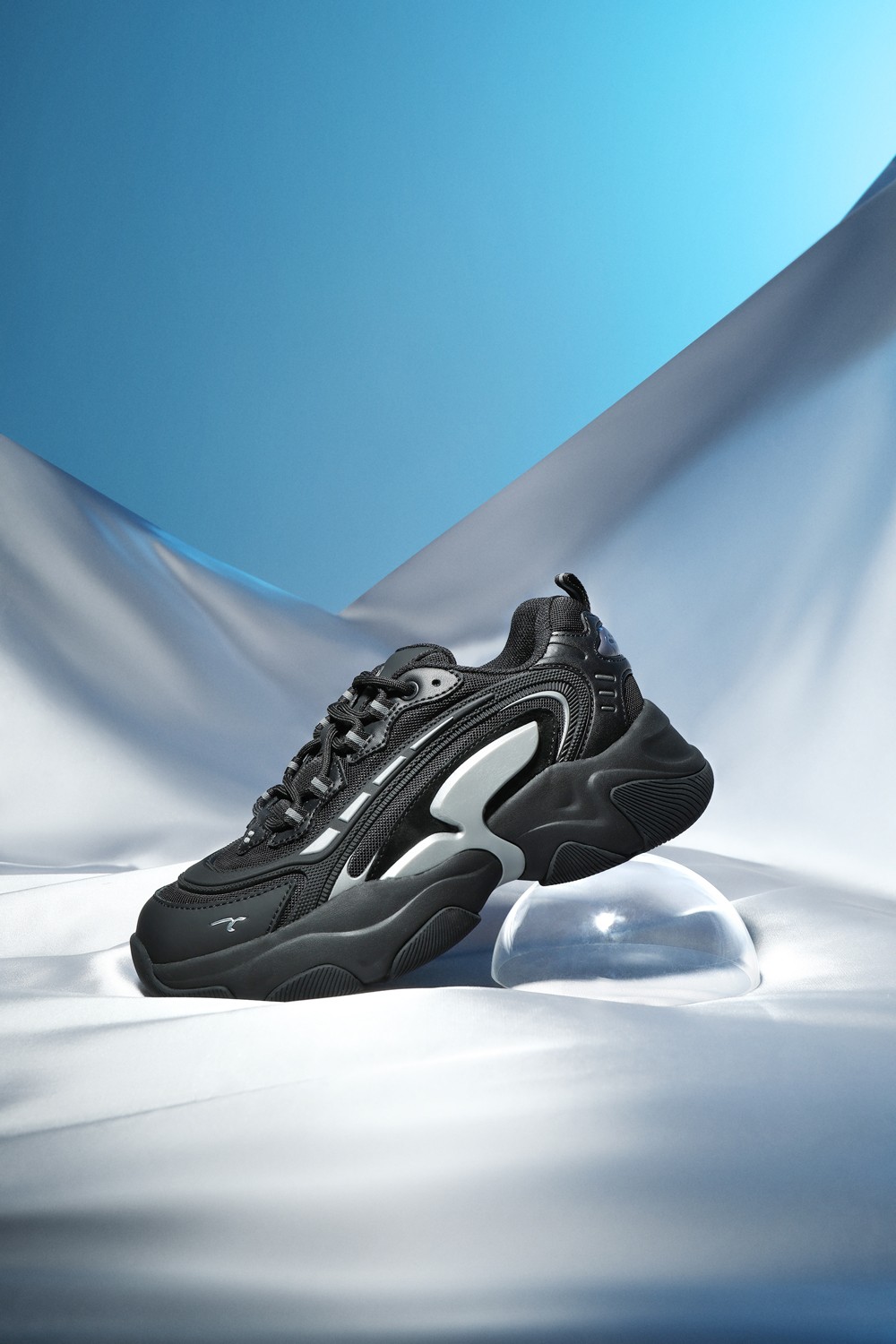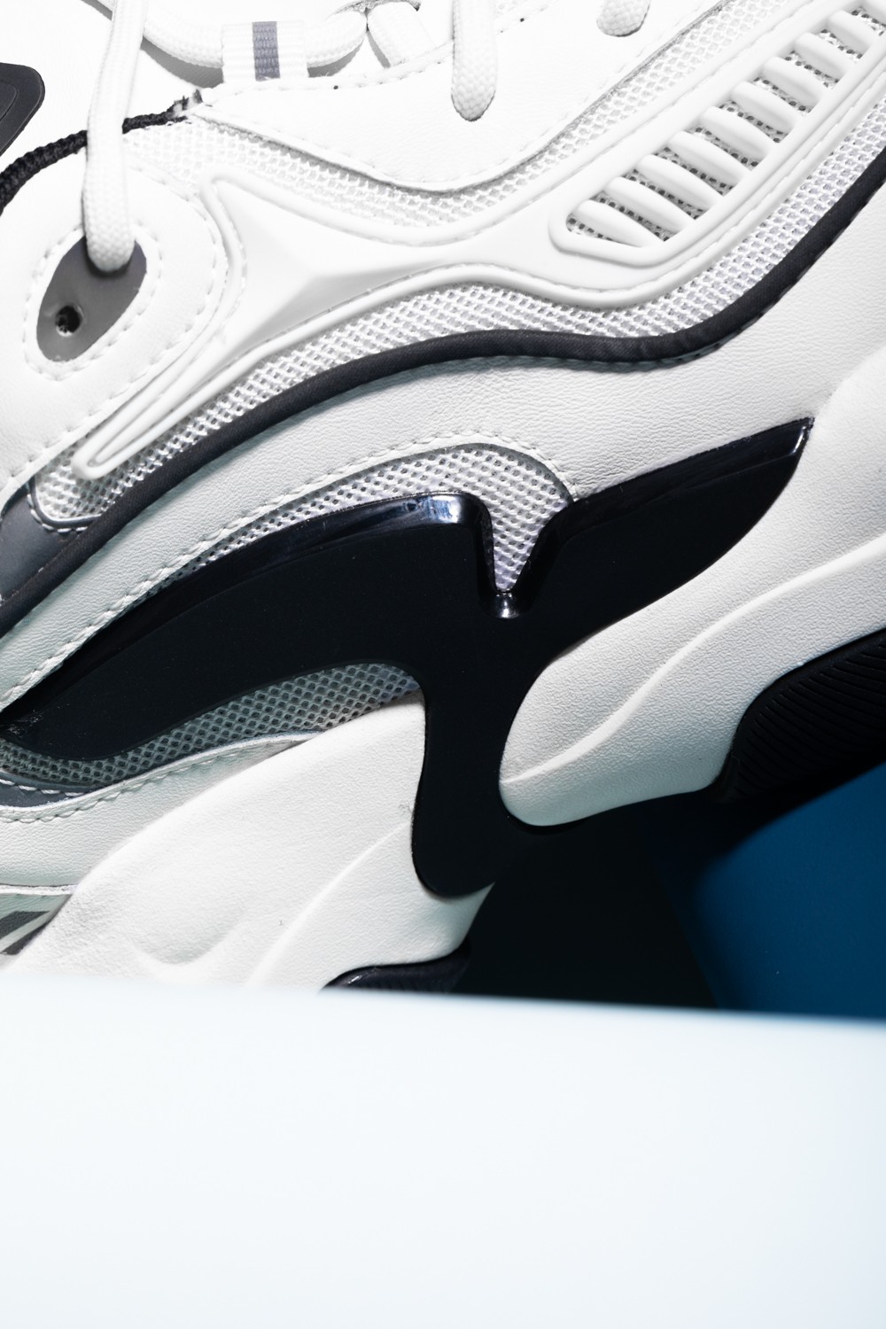 不仅有高质感鞋面 + 大廓型中底的套路,还有大量特殊细节点缀,时尚又不失科技感。
