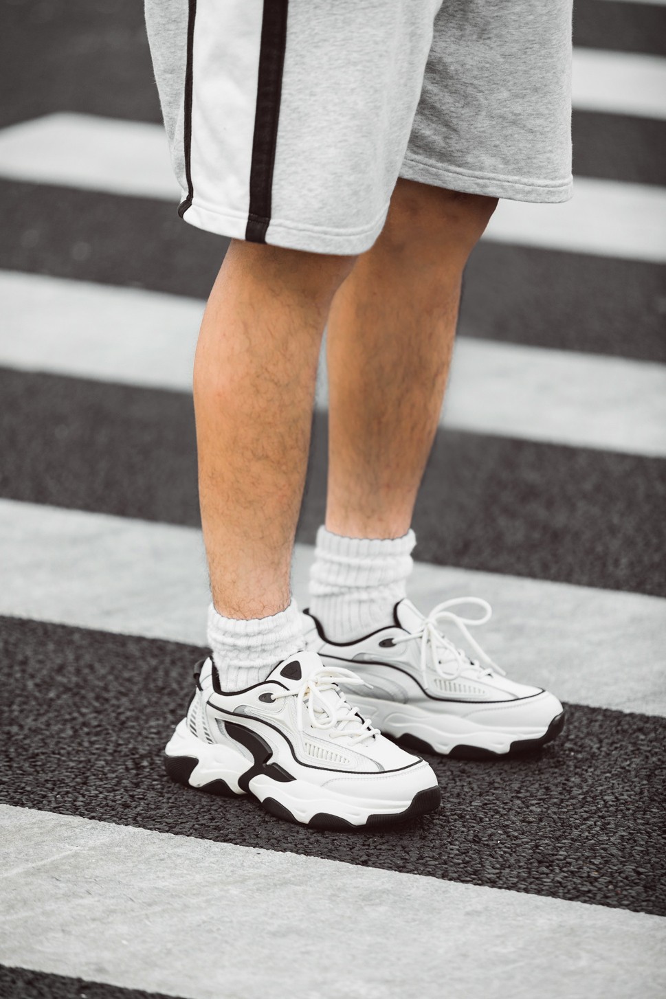 经典的老爹鞋造型搭配简约的黑白配色,颜值够高而且很百搭。