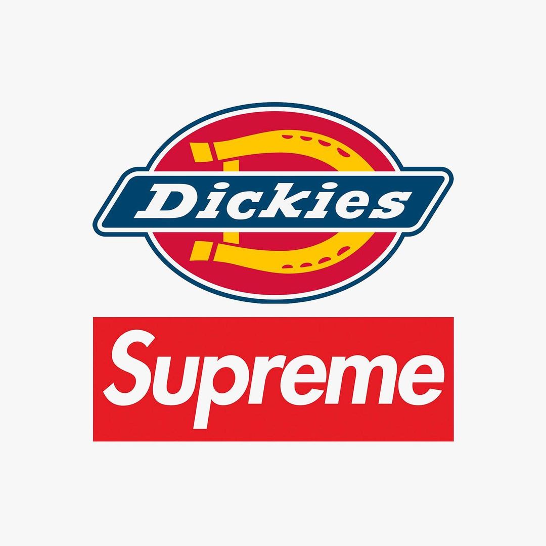 型录中除了最醒目的羽绒夹克之外,模特搭配的长裤疑似是 Supreme 与美国知名工装品牌 Dickies 的联名新款,裤兜上刺绣着 Dickies 与 Supreme 的 Logo。